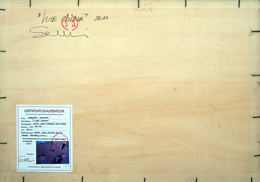 Marcello Scarselli 1953, Santa Maria a Monte (Pi) - [Italia] Luce chiara tecnica mista su carta applicata su tavola 50x70 cm 2011 firma dell'artista in basso e sul retro; opera con cornice certificato di autenticità firmato dall'artista