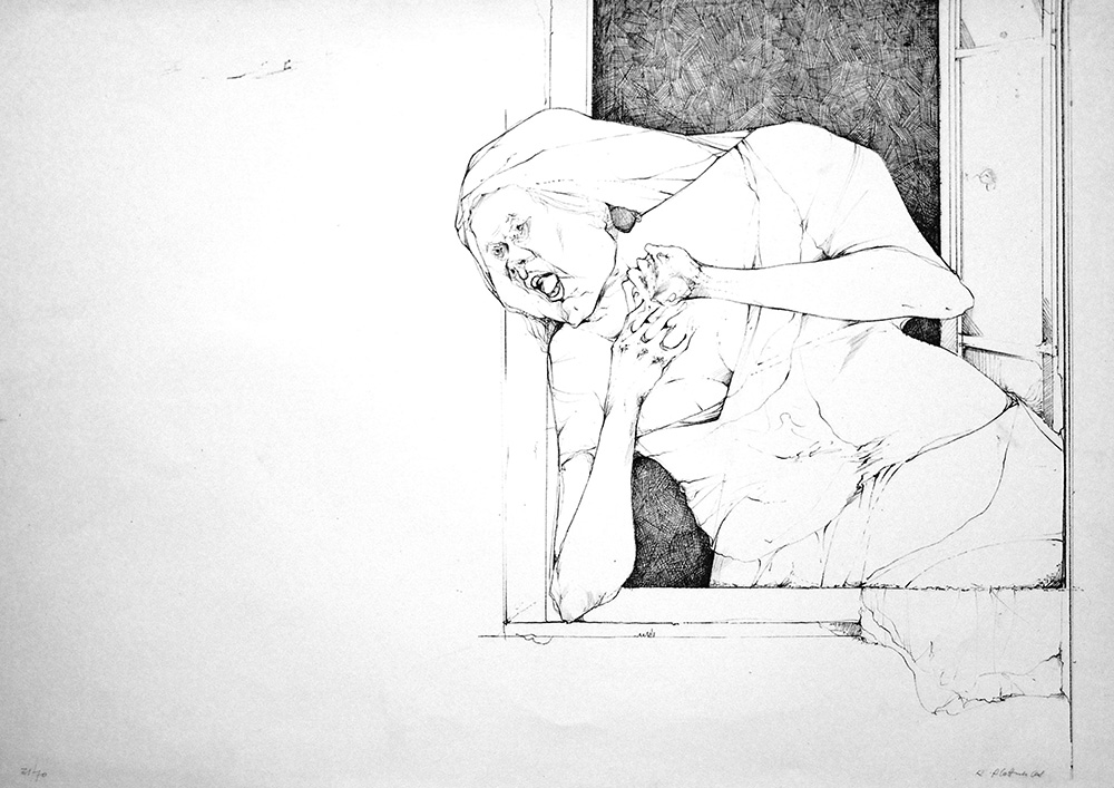 Karl Plattner 1919, Malles Venosta (Bz) - 1986, Milano (Mi) - [Italia] Donna alla finestra volta a sinistra litografia 51x71 cm es. 31/70; firma dell'artista in basso a destra certificato di autenticità Picenum