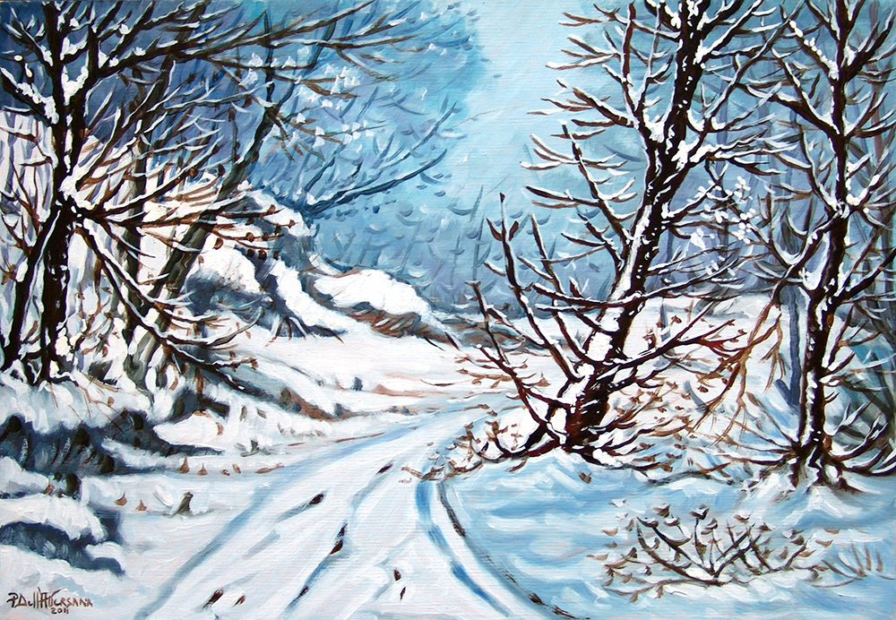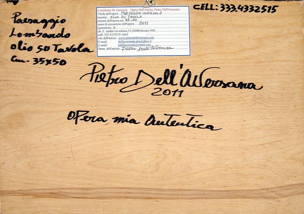 Pietro Dell'Aversana 1963, Sant'Arpino (Ce) - [Italia] Paesaggio invernale olio su tavola 35x50 cm 2011 firma dell'artista in basso a sinistra e sul retro certificato di autenticità firmato dall'artista