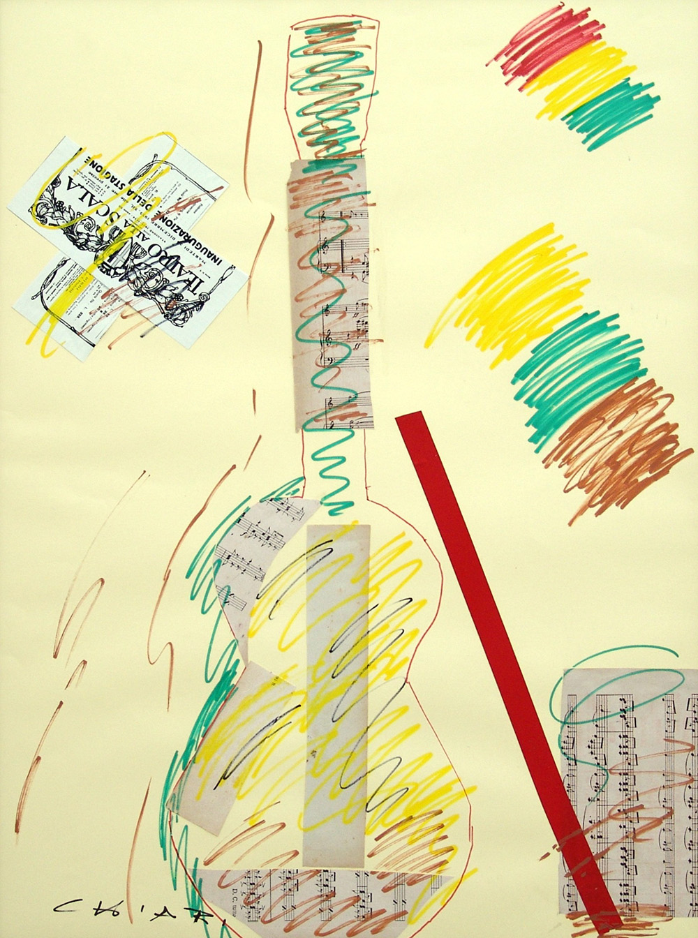 Giuseppe Chiari 1926, Firenze (Fi) - 2007, Firenze (Fi) - [Italia] senza titolo tecnica mista e collage su carta 70x50 cm 2005 firma dell'artista in basso a sinistra; opera con cornice certificato di autenticità dell’artista su fotografia