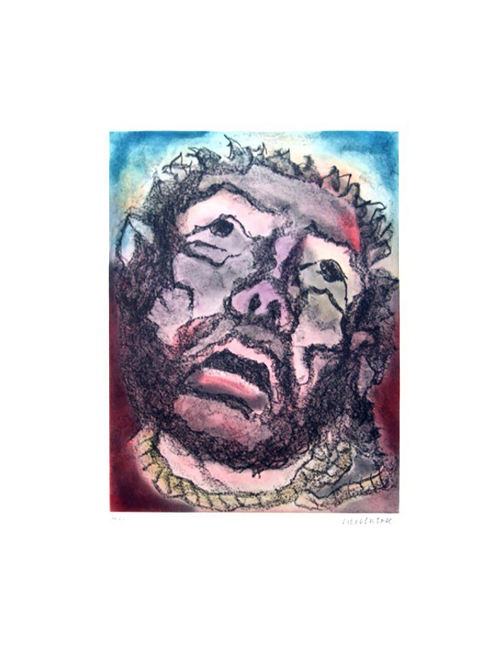 Domenico Cantatore 1906, Ruvo di Puglia (Ba) - 1998, Parigi (Francia) - [Italia] Volto di Cristo acquaforte acquatinta 65x50 cm es. 16/50; firma dell'artista in basso a destra; opera con cornice certificato di autenticità Picenum