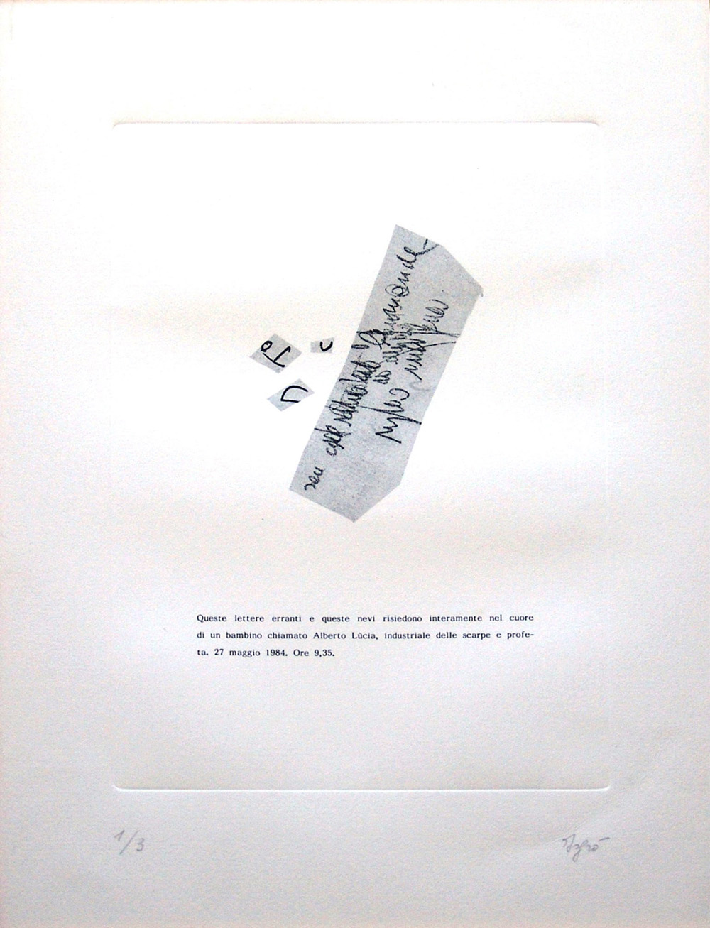 Emilio Isgrò 1937, Barcellona Pozzo di Gotto (Me) - [Italia] senza titolo litografia 43x31,5 cm es. 1/3; firma dell’artista in basso a destra; opera con cornice certificato di autenticità Picenum