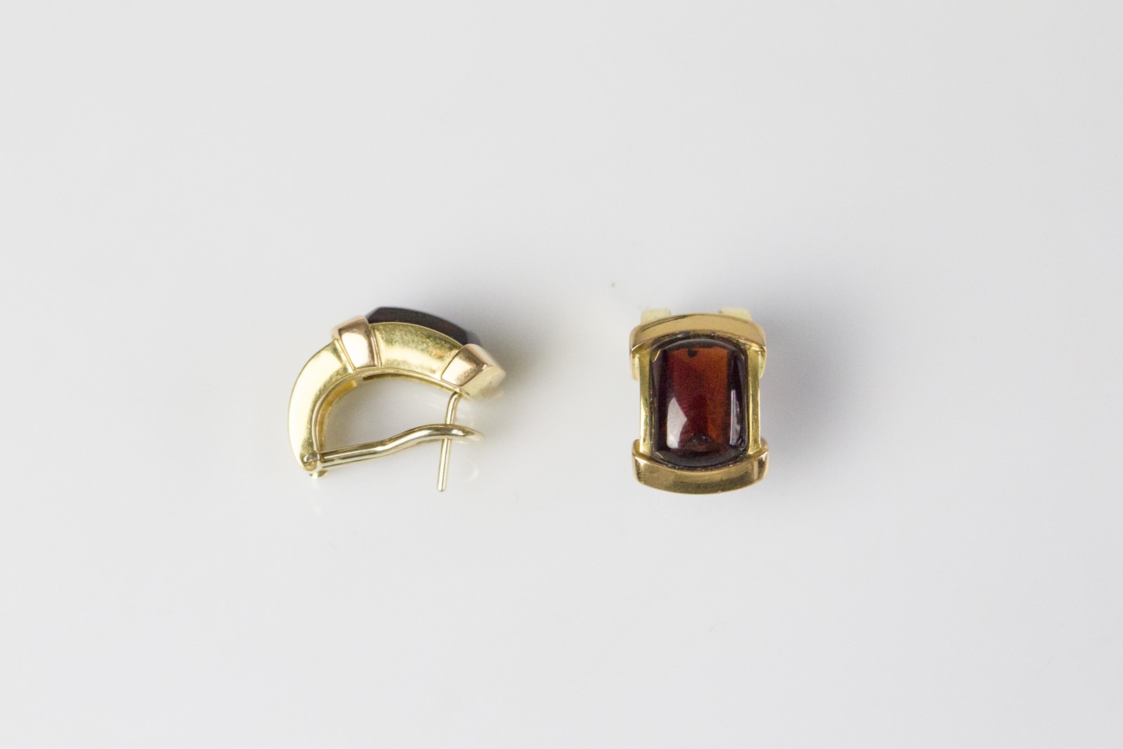 DAMIANI Gold Damiani earrings . . . Yellow gold earrings with garnet signed Damiani. Total gr 18.60