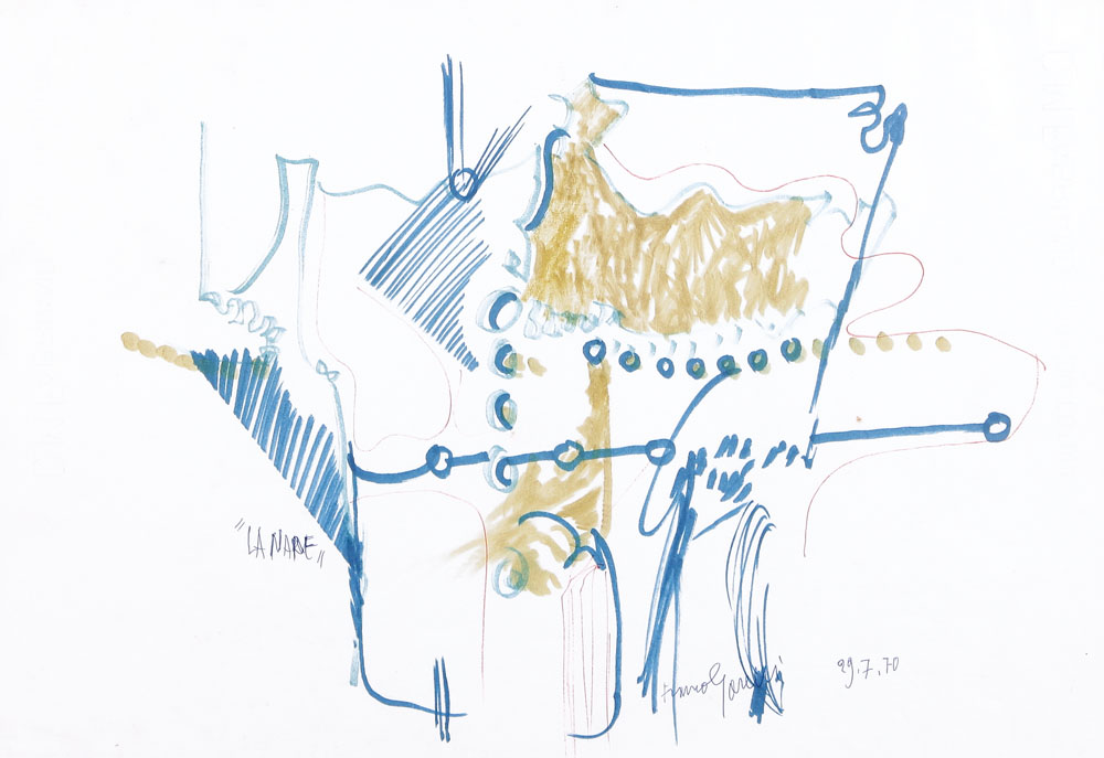 FRANCO GARELLI Diano d'Alba (Cn) 1909 - Torino 1973 La nave, 1970 pennarelli...