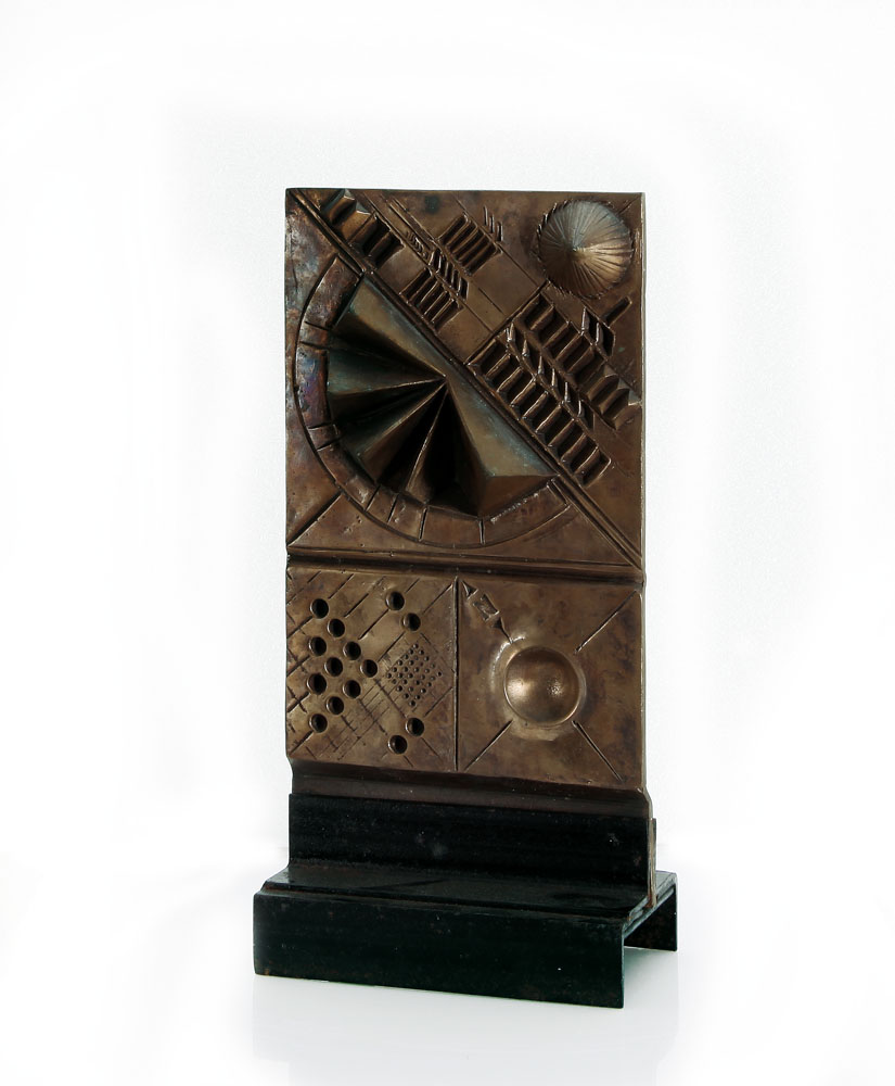 GIUSEPPE CALONACI 1931 Senza titolo, 1988 scultura in bronzo e ferro cm. 35x17x10, opera non firmata, etichetta della Valente Arte Contemporanea (Finale Ligure) sotto la base.