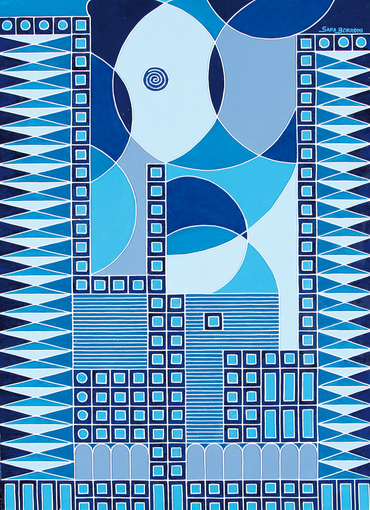 SARA BORRONI Legnano (MI) 10/09/1971 Archi-Cromo-44, 2009 olio su tela cm. 70x50, firma in alto a destra, titolo, firma, anno e timbro dell'artista al retro, dichiarazione d'autenticità e archivio dell'artista allegato.
