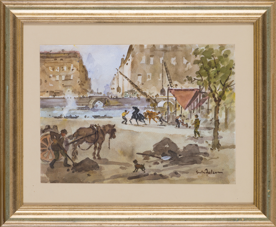 GIULIO FALZONI (1900-1978)Vecchia Milano - La DarsenaAcquerello su cartacm...