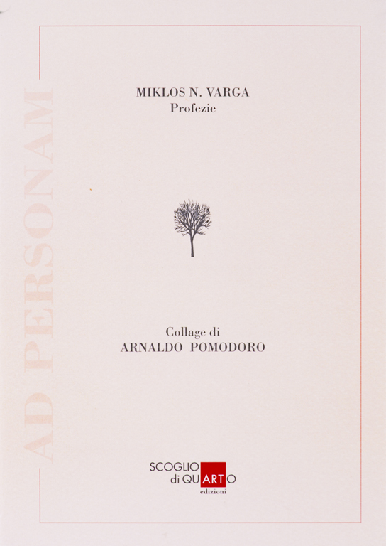 L'opera è entro libretto originale con poesia di Miklos N. Varga realizzato dalla Galleria Scoglio di Quarto in occasione della collettiva Ad Personam per la quale venivano realizzati 30 libretti contenenti 1 pezzo unico per ogni Artista