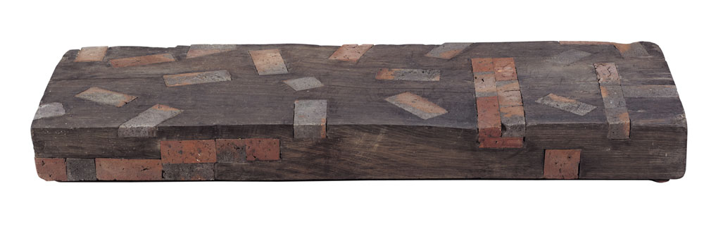 FRANZ STAHLER  Senza titolo scultura da appoggio in legno e cotto cm. 100,5x36,5x9, opera non firmata, etichetta della Valente Arte Contemporanea (Finale Ligure) al retro.