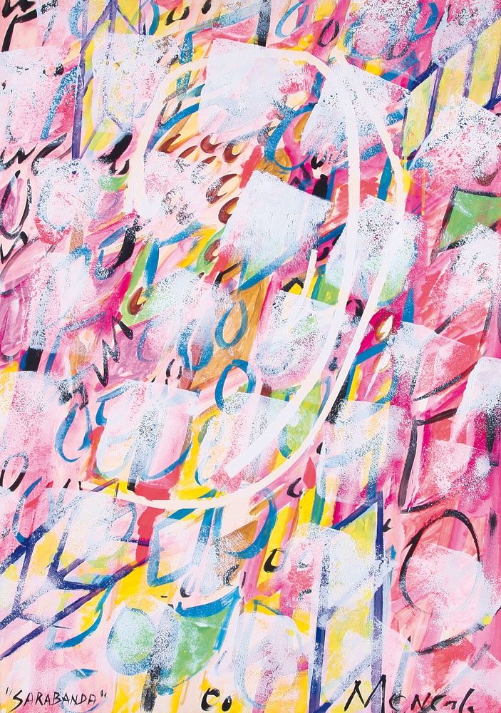 IGNAZIO MONCADA Palermo 04/06/1932 Sarabanda tecnica mista su carta intelata cm. 100x70, firma in basso a destra, titolo in basso a sinistra, dichiarazione d'autenticità dell'artista su foto.