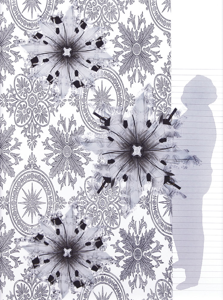 CLAUDIA SCARSELLA Viterbo 17/10/1979 Racconto di GF, 2012 collage, tecnica mista: disegno a mano e stampa digitale su carta da lucido applicata su piezografia a pigmenti su carta cotone cm. 57x40, (pezzo unico), firma, titolo e anno al retro, l'opera è stata presentata alla Fondazione Gianfranco Ferrè in occasione della presentazione del quarto numero della rivista semestrale "Pizza", nell'ambito del progetto "11 cover speciali per un magazine di ricerca". Dell'evento, con citazione degli autori delle cover, hanno scritto, tra le altre, le testate: ANSA, Corriere della moda, Corriere.com (corriere canadese), Domusweb.it, Exibart.com, FashionMagazine.it, Il Giornale - Milano, La Repubblica - Milano, Tiscali.it, Vogue.it, Vanityfair.it (che ha pubblicato l'opera). Nel mese di marzo l'opera viene pubblicata per due settimane sulla pagina principale di Eternal Optimist (www.eternal-optimist.com), portale di arte e design "al 10% Greco, al 90% internazionale", a corredo di una lunga intervista con l'artista. Claudia Scarsella è Premio Arte 2010 - Targa Oro selezione Grafica. Il suo nome è nella lista dei "150 artisti attivi in Italia da seguire nel 2012", pubblicata (pag. 125) dal Corriere della Sera/CorrierEconomia nell'instant book: "Come investire nel 2012 - i consigli per proteggere vil patrimonio in un anno complicato". Le sue quotazioni sono considerate promettenti nella forbice 3 - 14 mila euro.