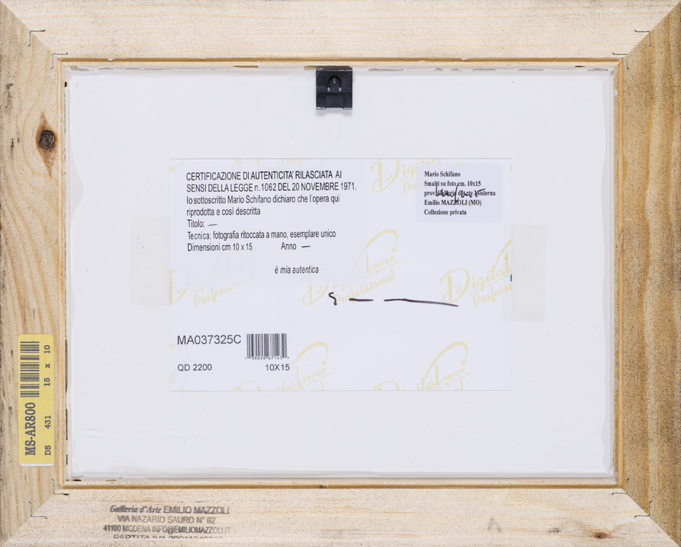 Certificato di autenticità e firma di Emilio Mazzoli al retro