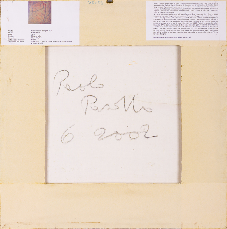 PAOLO PASOTTO (1930-2015)Senza Titolo. 2002Tecnica mista su telacm 55x55Firma...