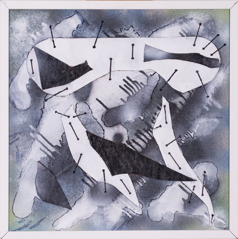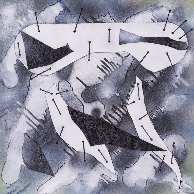 Tecnica mista e applicazioni di pelle su tela intavolata
