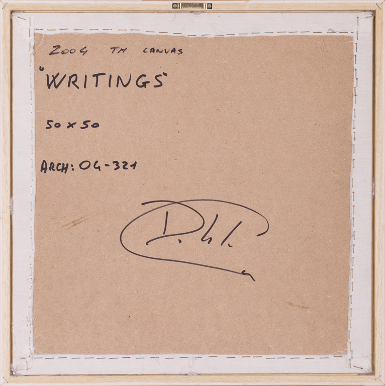 Firma, titolo, datazione, tecnica, misure e numero di archiviazione al retro