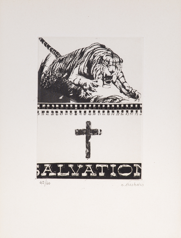 Opera originariamente realizzata per il volume 'Antologia internazionale dell'incisione contemporanea - L'avanguardia internazionale - Scoperta dell'America, Vol.5', a cura di Billy Klüver, edito dalla Galleria Schwarz (MI) nel 1964