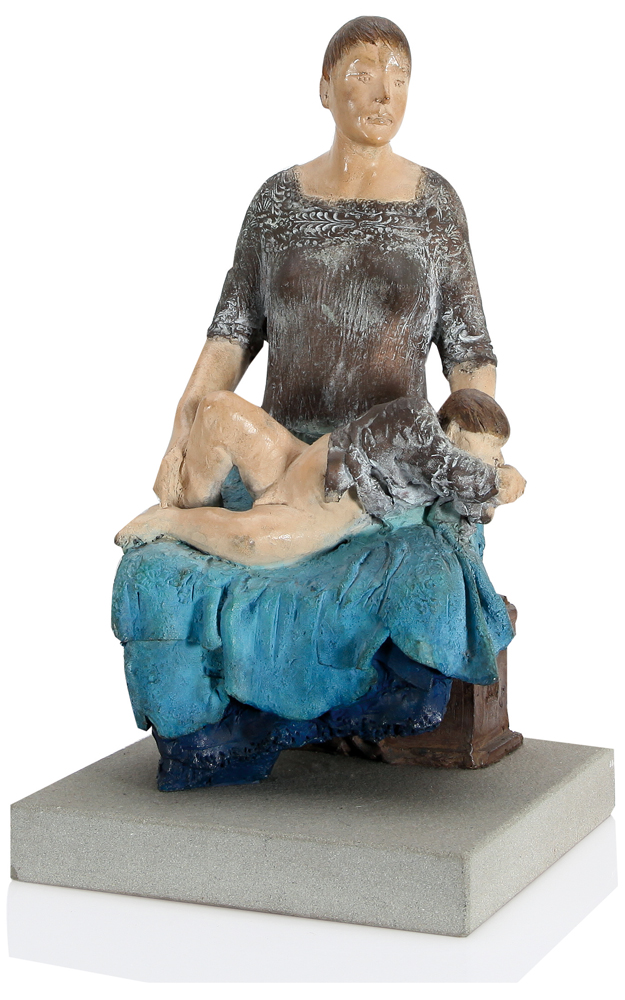 UGO RIVA Bergamo 1951 Mi porto Piero nel nuovo millennio, 1998 scultura in bronzo con rifinitura a cesello e patinatura policroma con acidi e ossidi minerali cm. 39x20, altezza 21, esemplare 32/195, reca incisi il numero e la firma, i sigilli della Fonderia Venturi Arte e di Artè (BO), certificato d'autenticità della Artè (BO) allegato