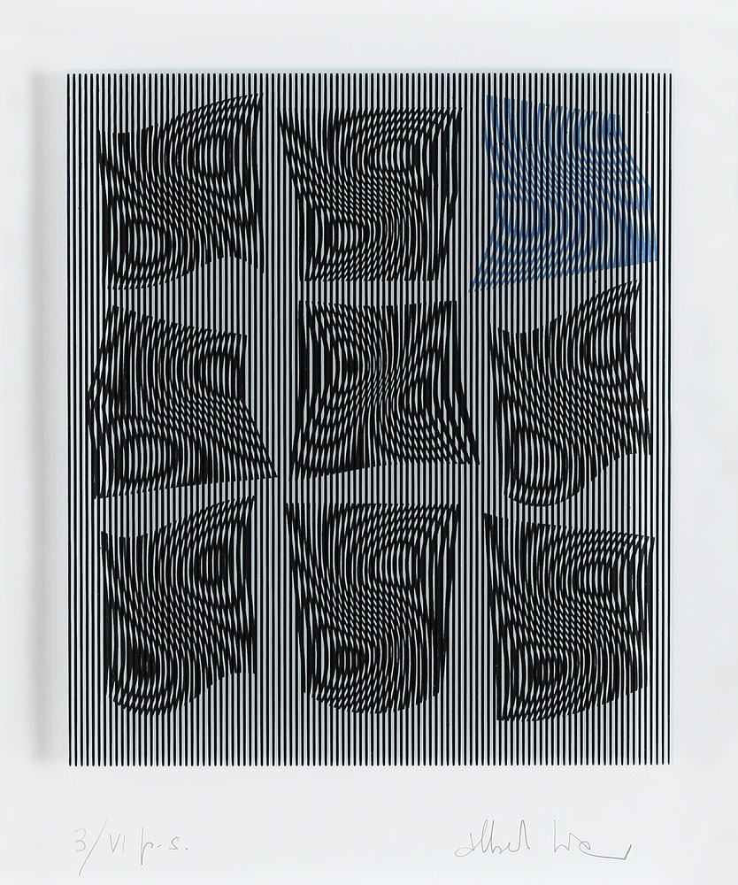 ALBERTO BIASI Padova 02/06/1937 Senza titolo serigrafia su plexiglass e carta cm. 40x33, esemplare P.A. 3/VI, firma in basso a destra.