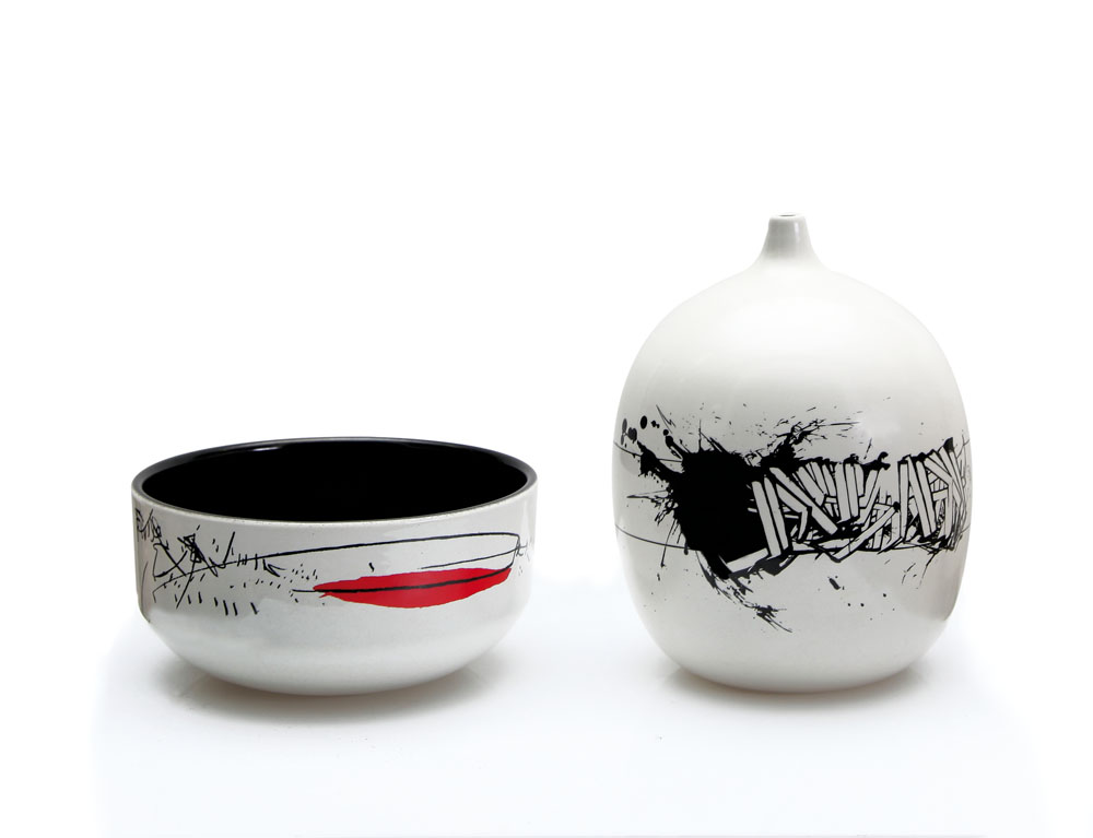 EMILIO SCANAVINO Genova 28/02/1922 - Milano 29/11/1986 Senza titolo vaso in ceramica altezza cm. 19, esemplare 22/50, firma sotto la base. Senza titolo ciotola in ceramica policroma diametro cm. 17,5 altezza 8,5; esemplare 26/50, firma sotto la base.