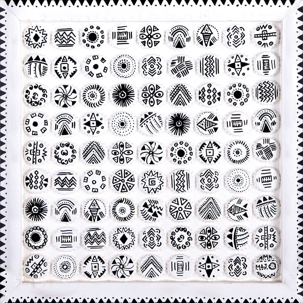 MARGARET MAJO Zimbabwe 1950 Senza titolo, 1999 acrilico, metallo e flatting su tavola con cornice invasa cm. 33,5x33,5; firma in basso a destra, dichiarazione d'autenticità dell'artista su foto.