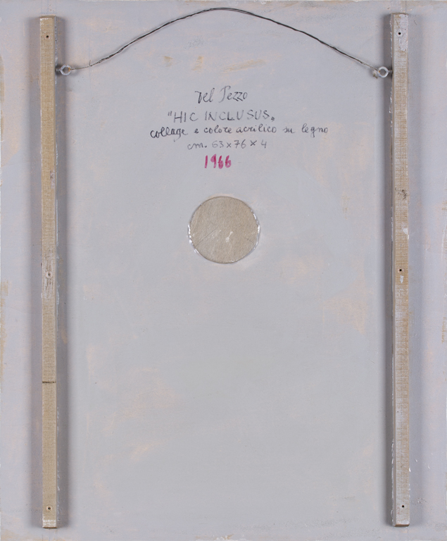 LUCIO DEL PEZZO (1933)Hic inclusus, 1966Collage e colore acrilico su legnocm...