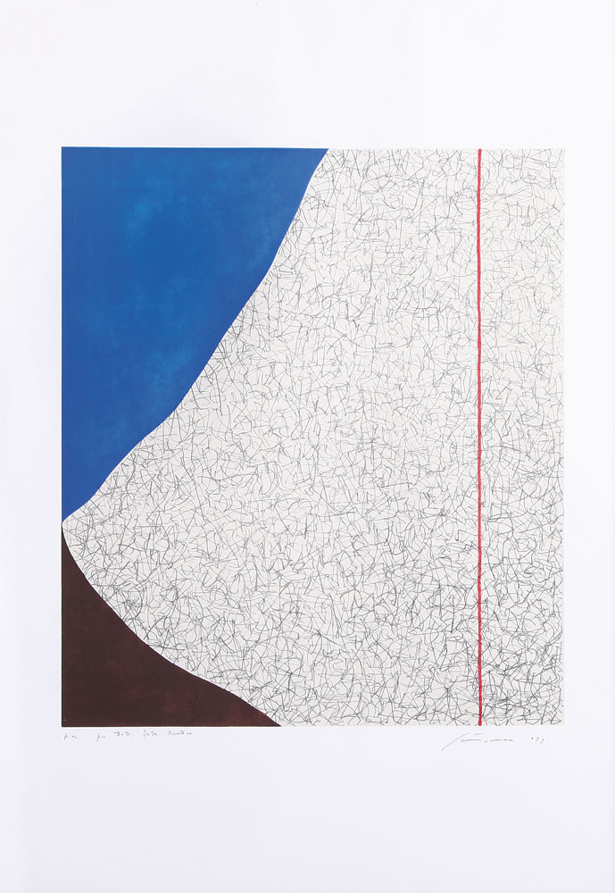 GIUSEPPE SANTOMASO Venezia 26/09/1907 - 24/05/1990 Senza titolo, 1973 litografia su carta cm. 75,5x53,5; esemplare P.A., firma e anno in basso a destra, dedica in basso a sinistra.