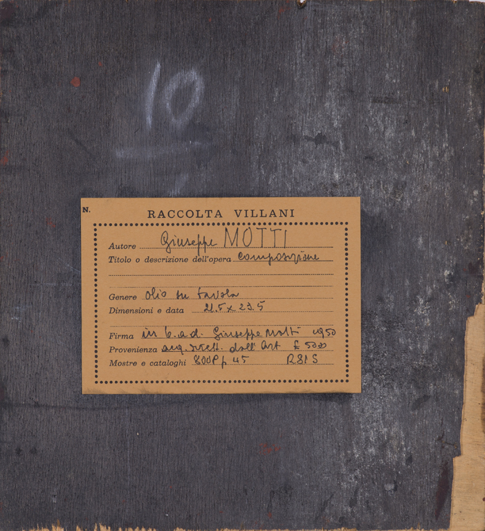 GIUSEPPE MOTTI (1908-1988)Composizione, 1950Olio su tavolacm 23,5x21,5Firma e...