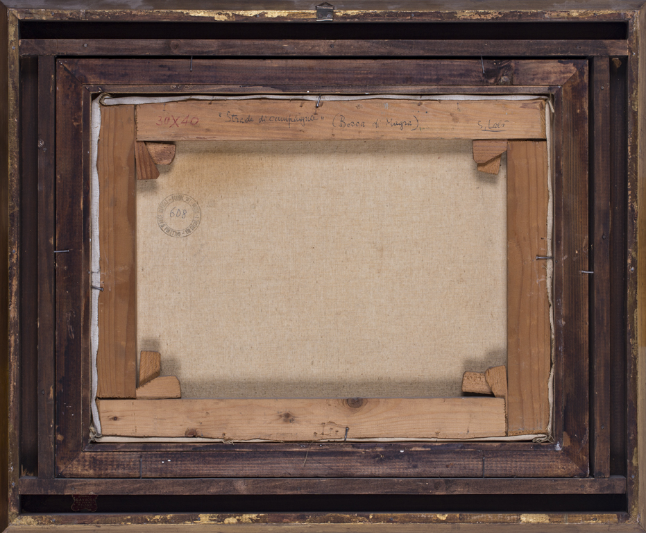 Timbro della Galleria d'Arte Gavioli (MI) con relativo numero di inventario al retro