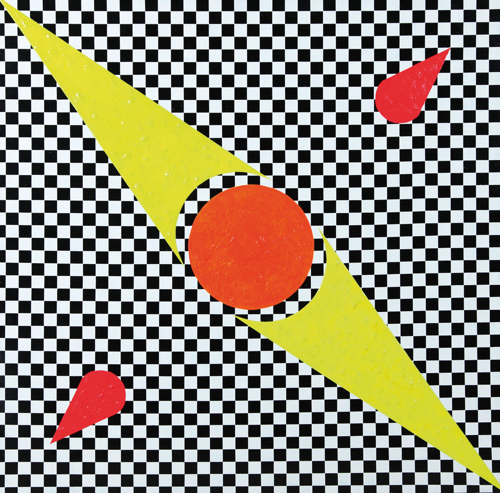 MASSIMO SALVADORI Casale Monferrato 17/11/1960 - Senza titolo, 1995, smalti e carta su legno cm. 100x100, firma e anno al retro, dichiarazione d'autenticità dell'artista e Archivio Massimo Salvadori numero 0011 su foto, opera senza cornice, pubblicato sul catalogo della mostra "Massimo Salvadori, geometrie illusorie", tenutasi presso la Galleria Via Dei Mercati (VC) dal 28 marzo al 18 aprile 2010, pagina 19.