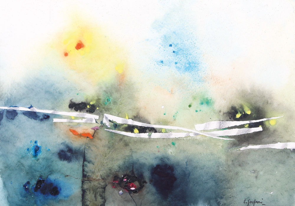 LUCIANO GASPARI Venezia 22/03/1913 - 2007 Senza titolo acquerello e collage su carta cm. 45x64, firma in basso a destra, già Finarte (MI), maggio 2008.