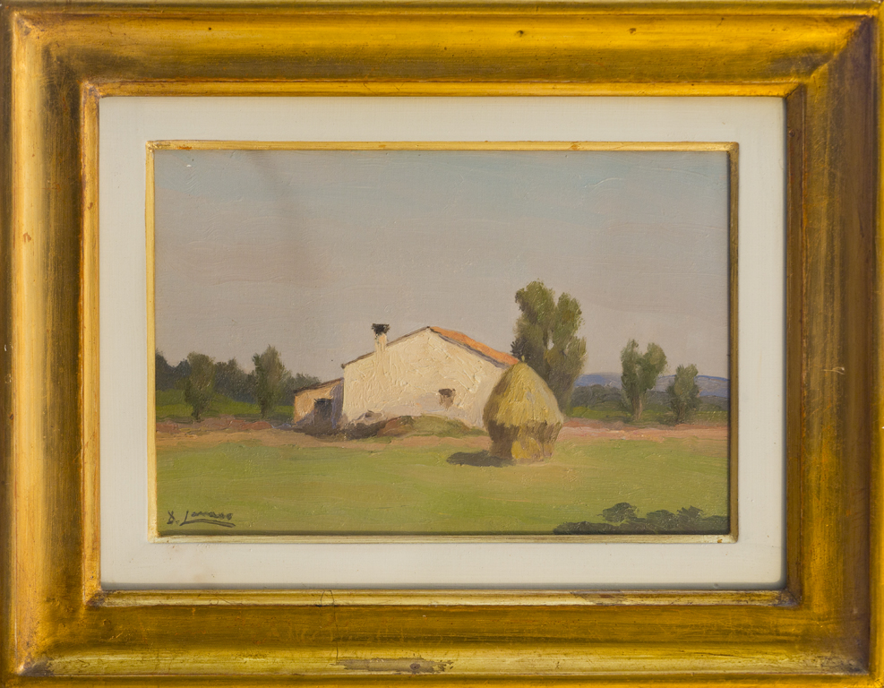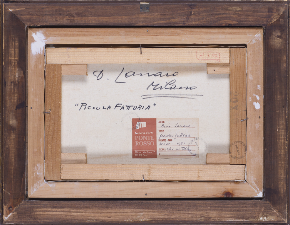 DINO LANARO (1909-1998)Piccola fattoria, 1983Olio su telacm 20x30Firma al...