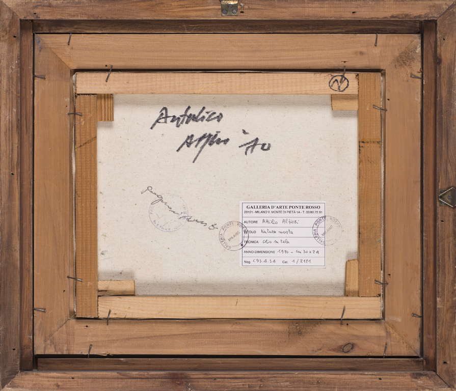 Etichetta e timbri della Galleria d'Arte Ponte Rosso (MI) al retro