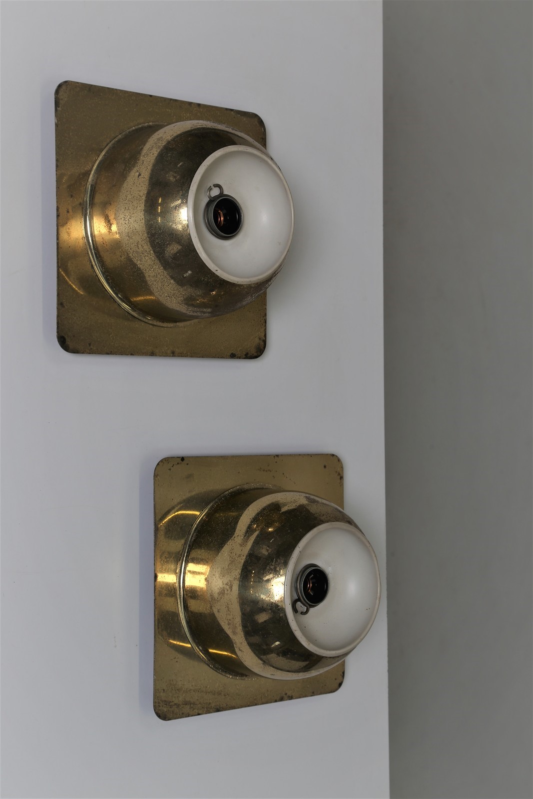REGGIANI GOFFREDO Coppia di lampada da parete in ottone, per Reggiani anni 60. -. Cm 21,00 x 21,00 x 11,50.