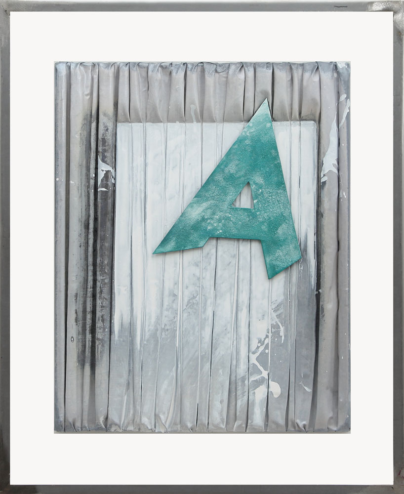 UMBERTO MARIANI Milano 16/11/1936  Senza titolo: A, 2008 acrilico su piombo operato applicato su tavola cm. 42x33, con cornice dell'artista cm. 56x45, firma, titolo e anno al retro, dichiarazione d'autenticità dell'artista su 3 foto.
