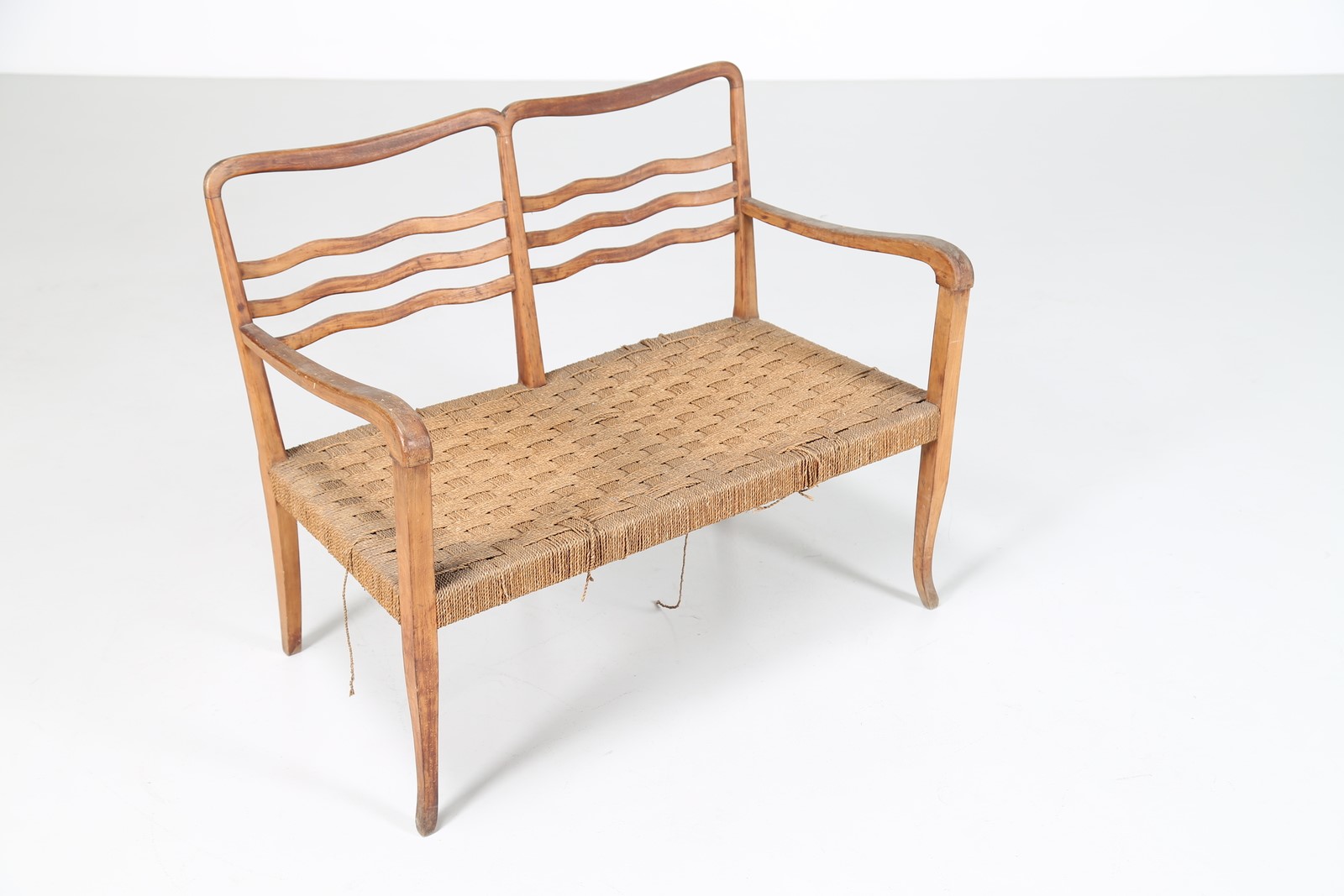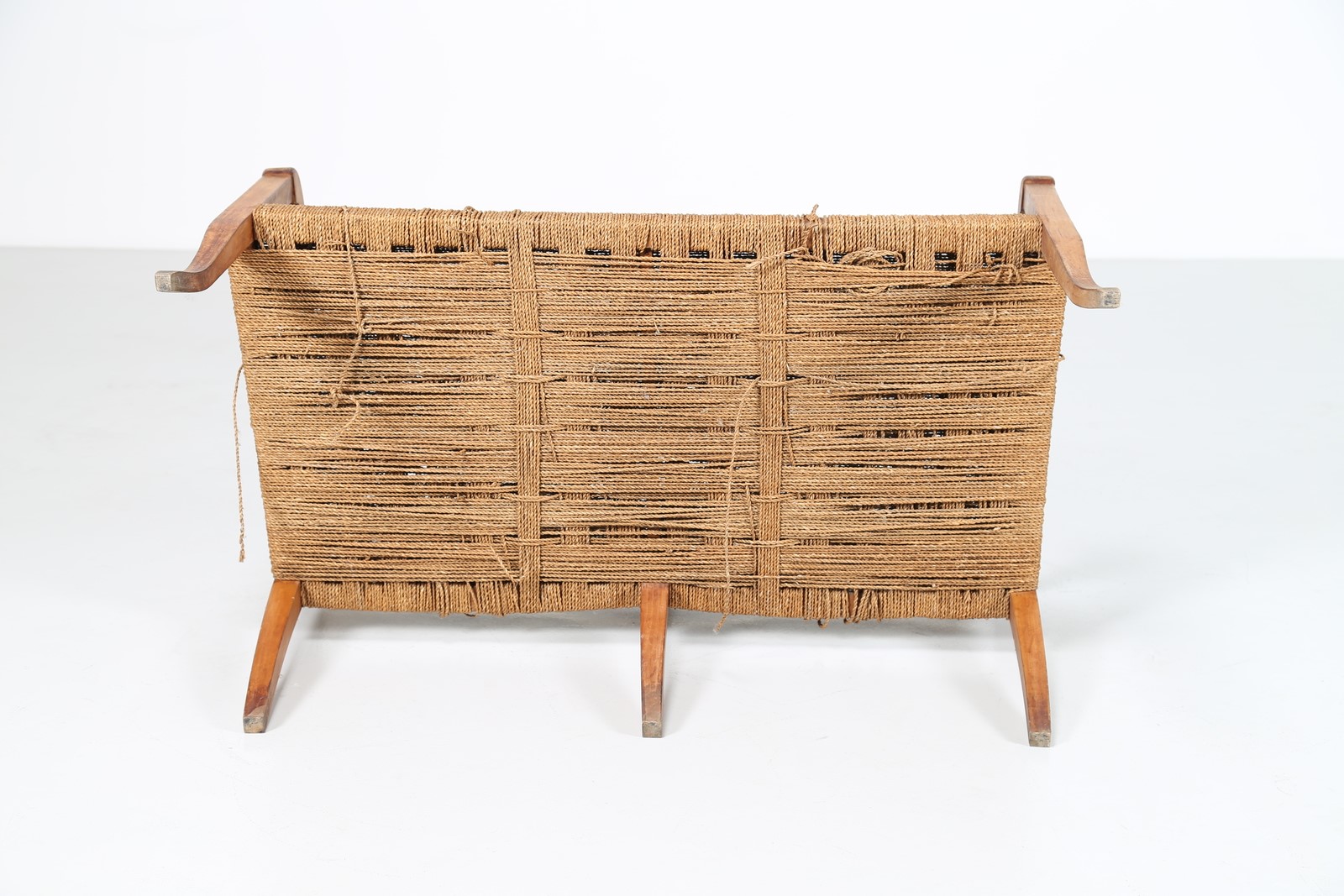 MANIFATTURA ITALIANA Divanetto in noce e corda, anni 40. -. Cm 100,00 x 80,00 x 54,00.