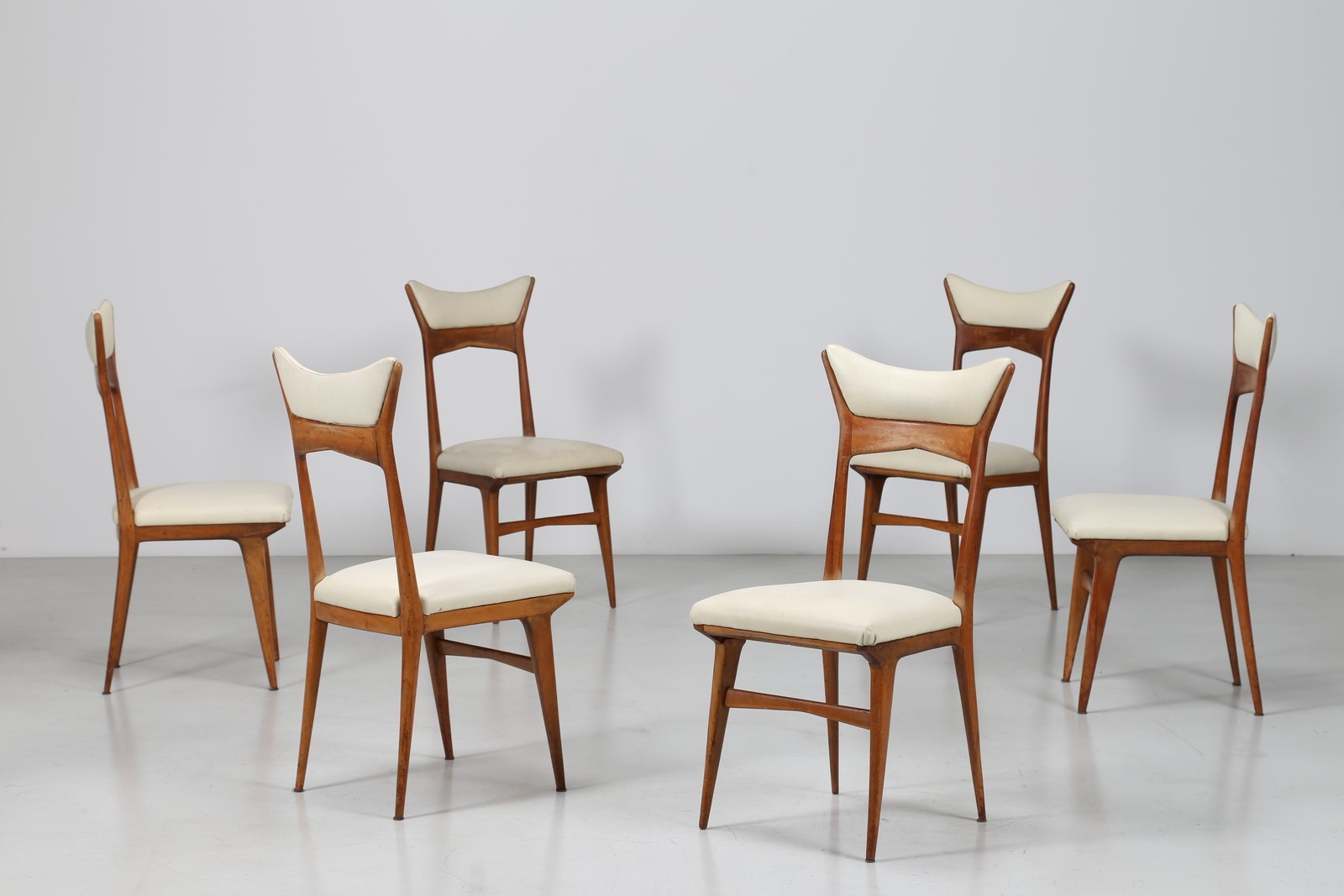 MANIFATTURA ITALIANA Sei sedie in legno e sky, anni 50. . Cm 46,00 x 95,00 x...