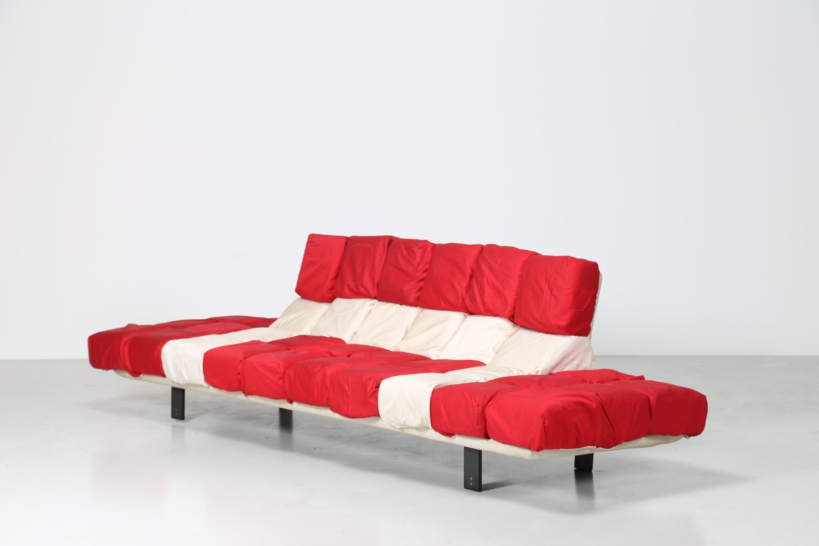 ROBERTO PAMIO e RENATO TOSO Divano in metallo ed elementi cubici in tessuto, mod. Scacco Matto, per Arflex, anni 80. Pubblicazioni; Ottagono, n. 67, settembre 1982. -. Cm 270,00 x 74,00 x 82,00.