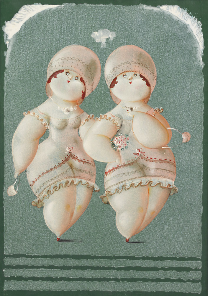 NICOLA VIETTI Marsiglia 22/03/1945 Le gemelle olio su tela cm. 70x50, firma...