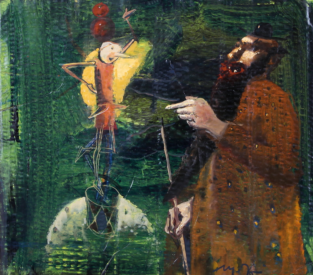 MARIO MADIAI Livorno 1944  Pinocchio, 2004 olio su cartone cm. 32x35, firma in basso a destra, etichetta dell'artista al retro, dichiarazione d'autenticità dell'artista su foto.
