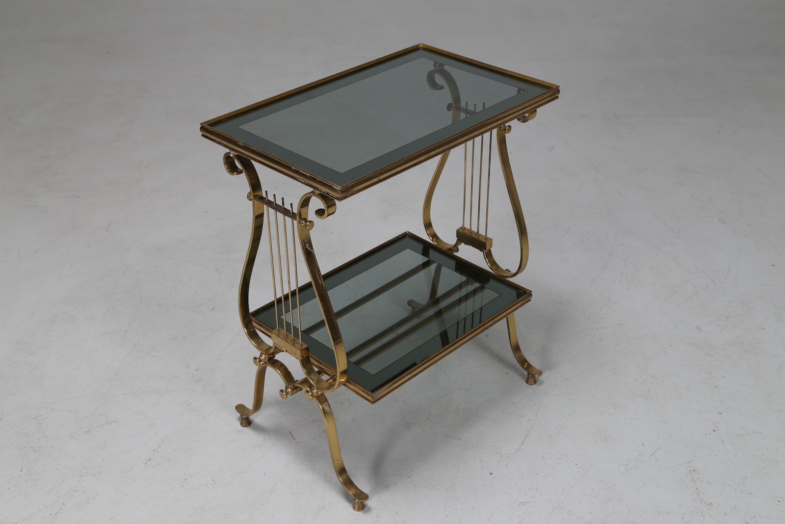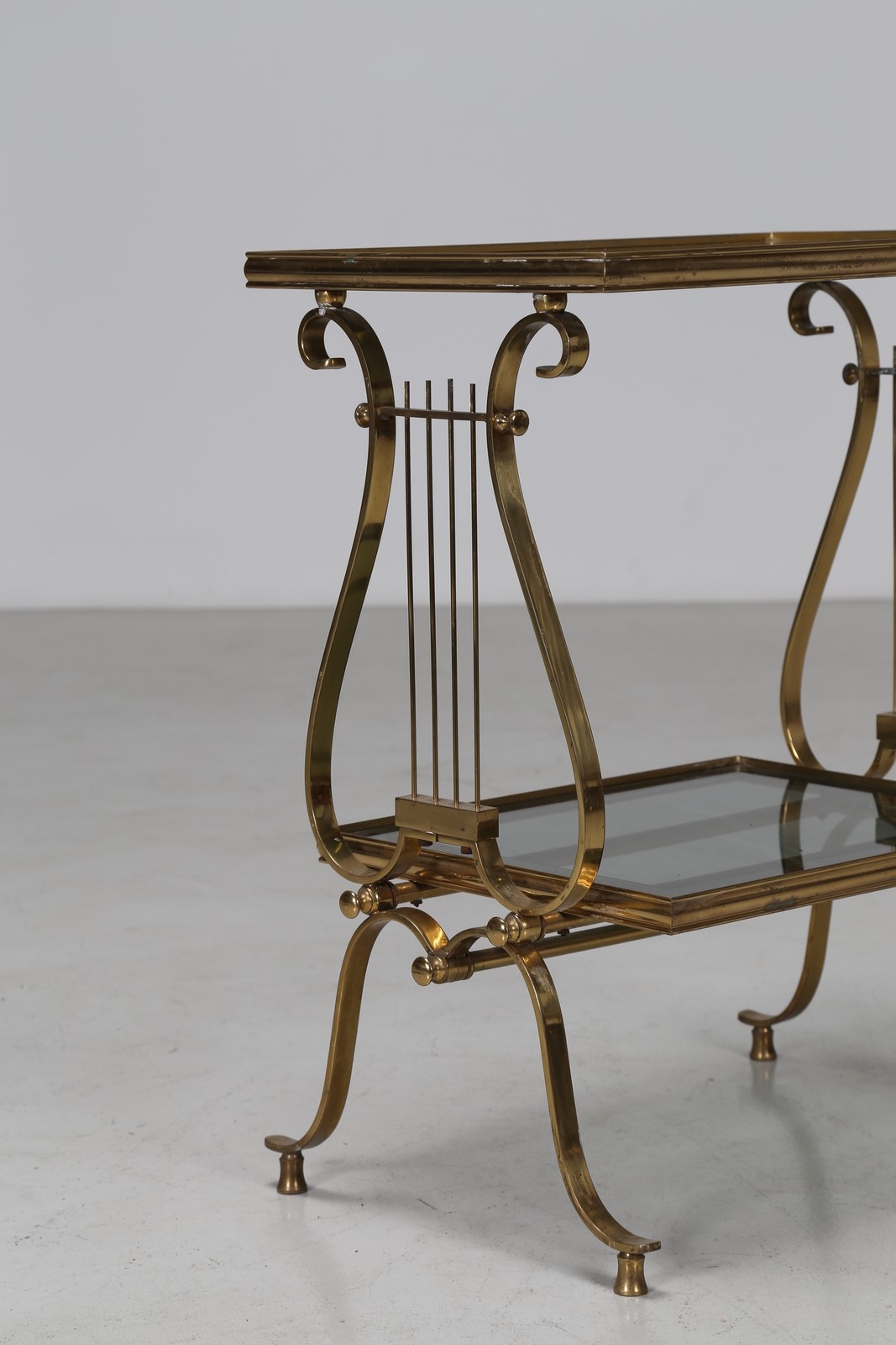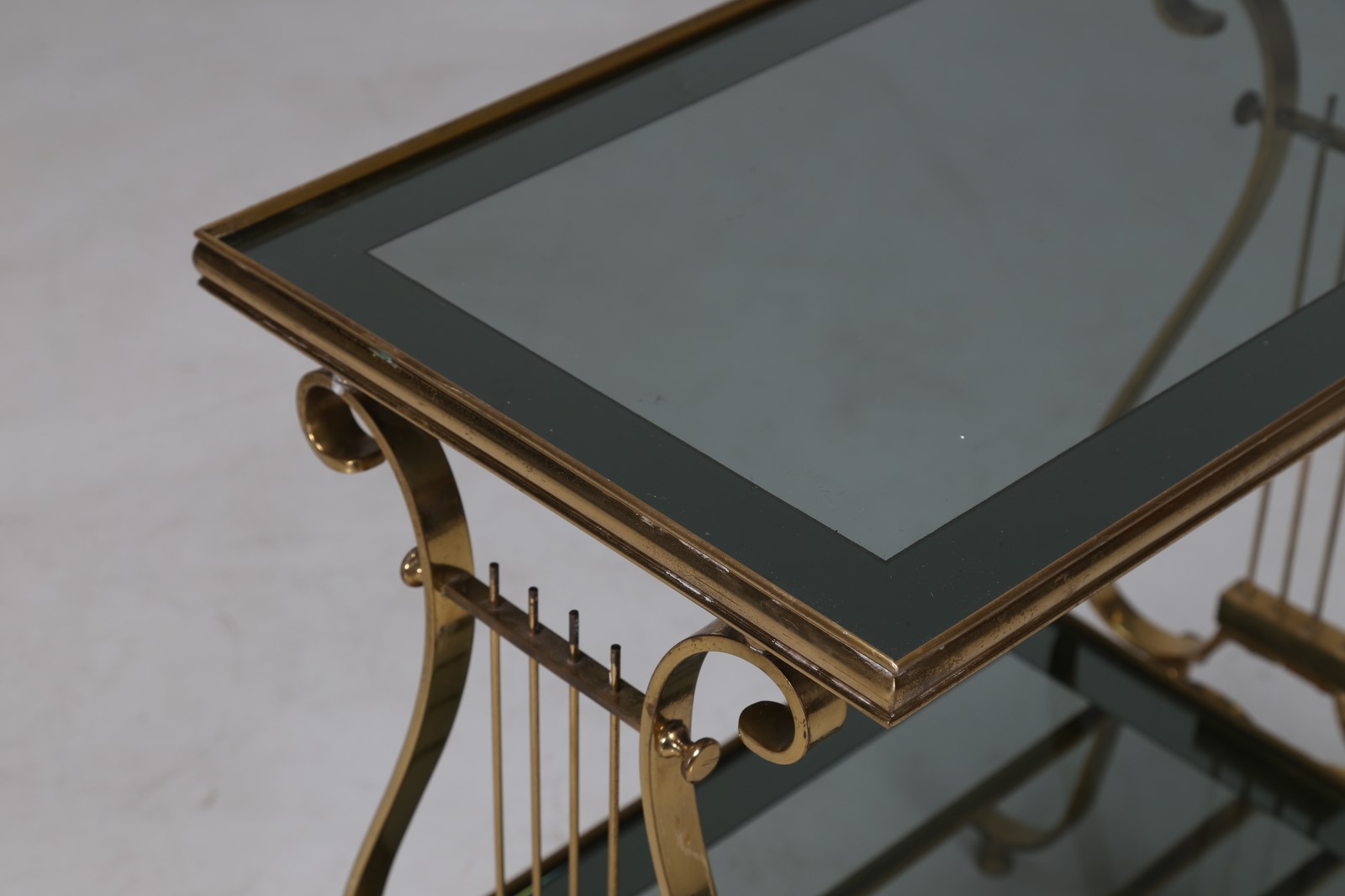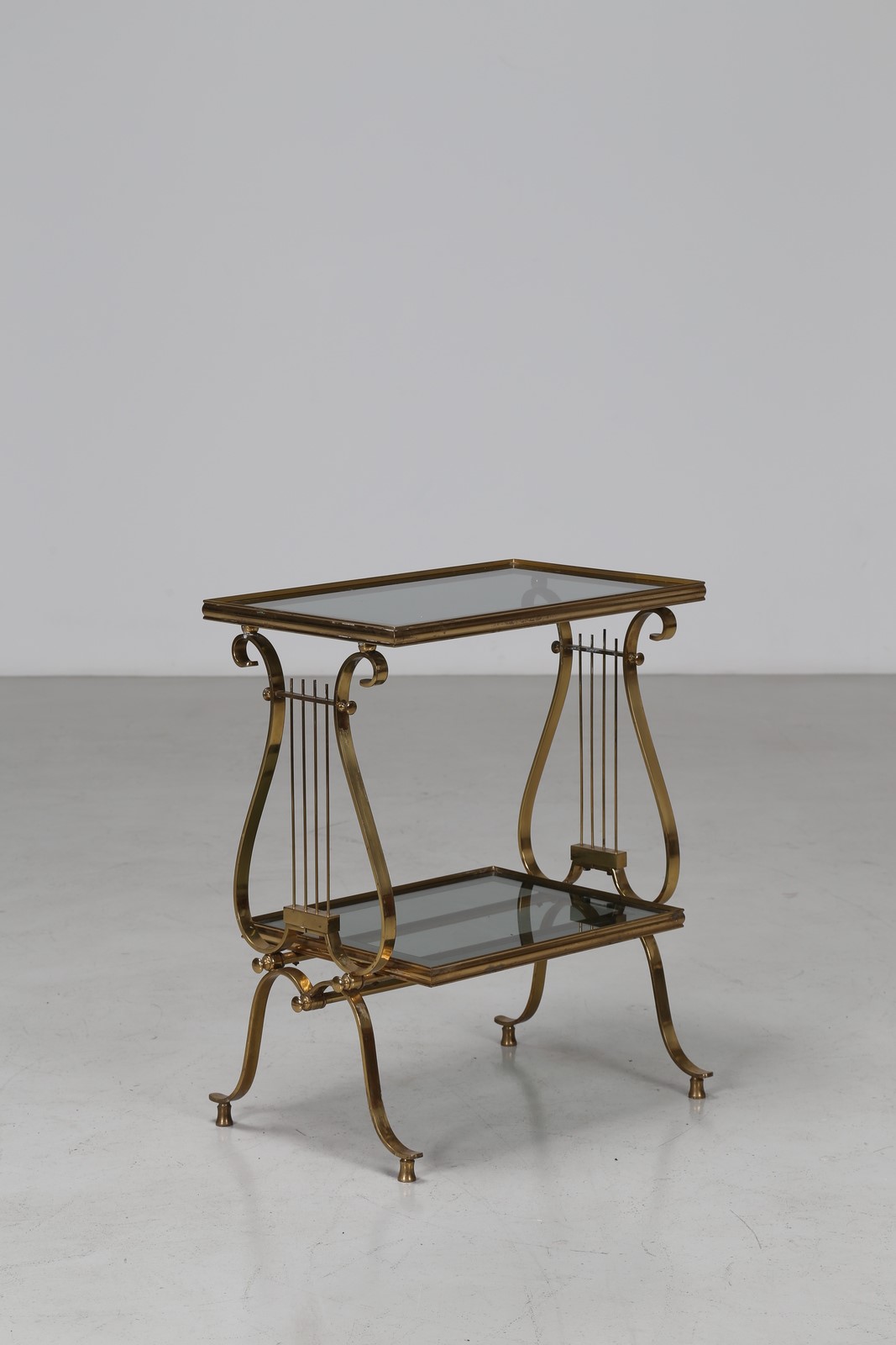 Lotto 393 | MANIFATTURA ITALIANA Tavolino in ottone e cristallo. -. Cm 56,00 x 66,00 x...
