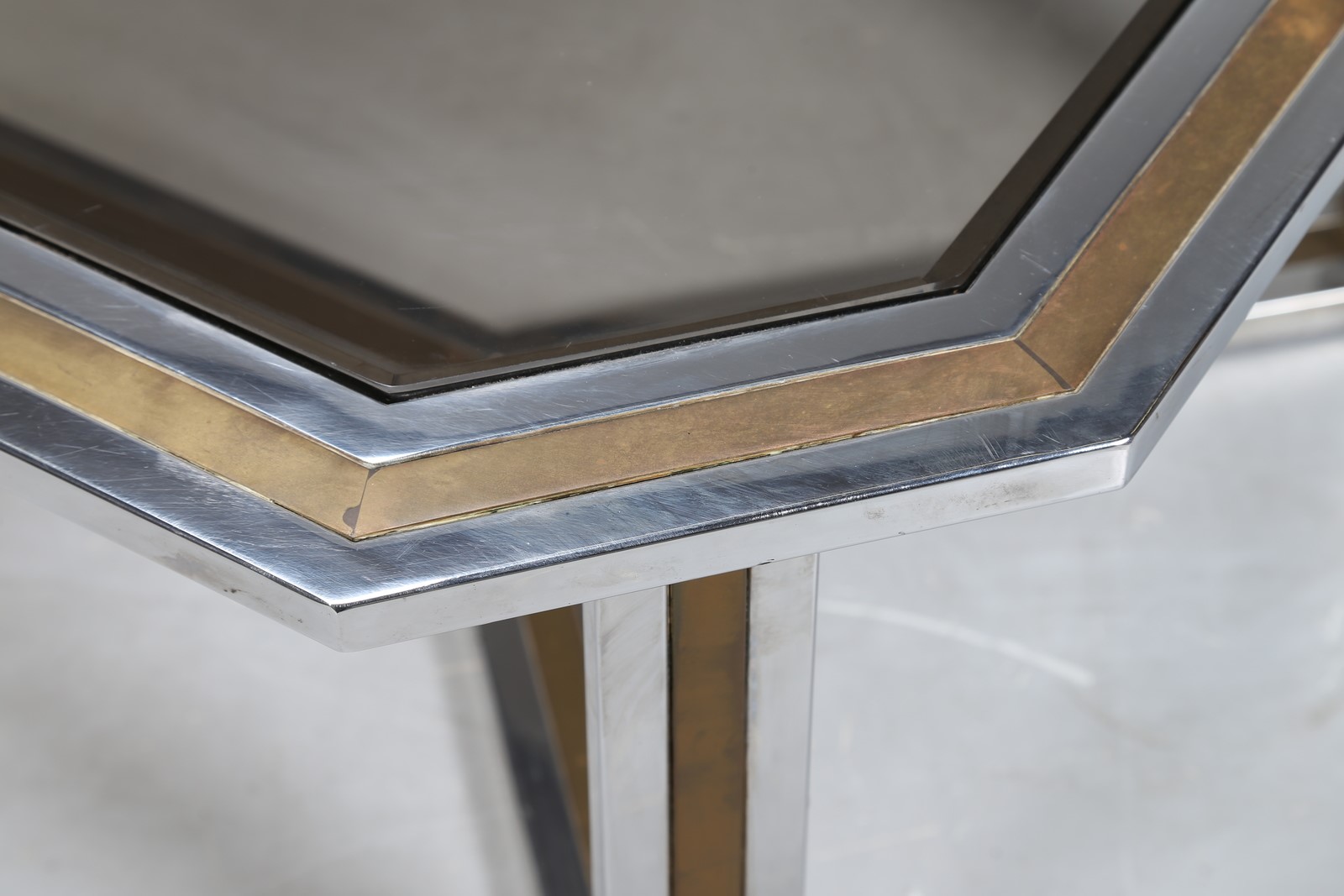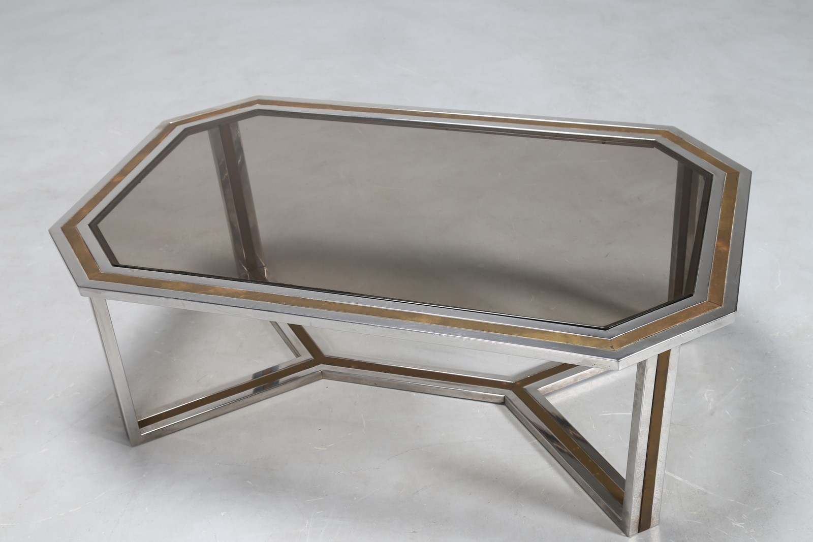 REGA ROMEO Tavolino da caffè in metallo cromato e ottone, con piano in vetro,...