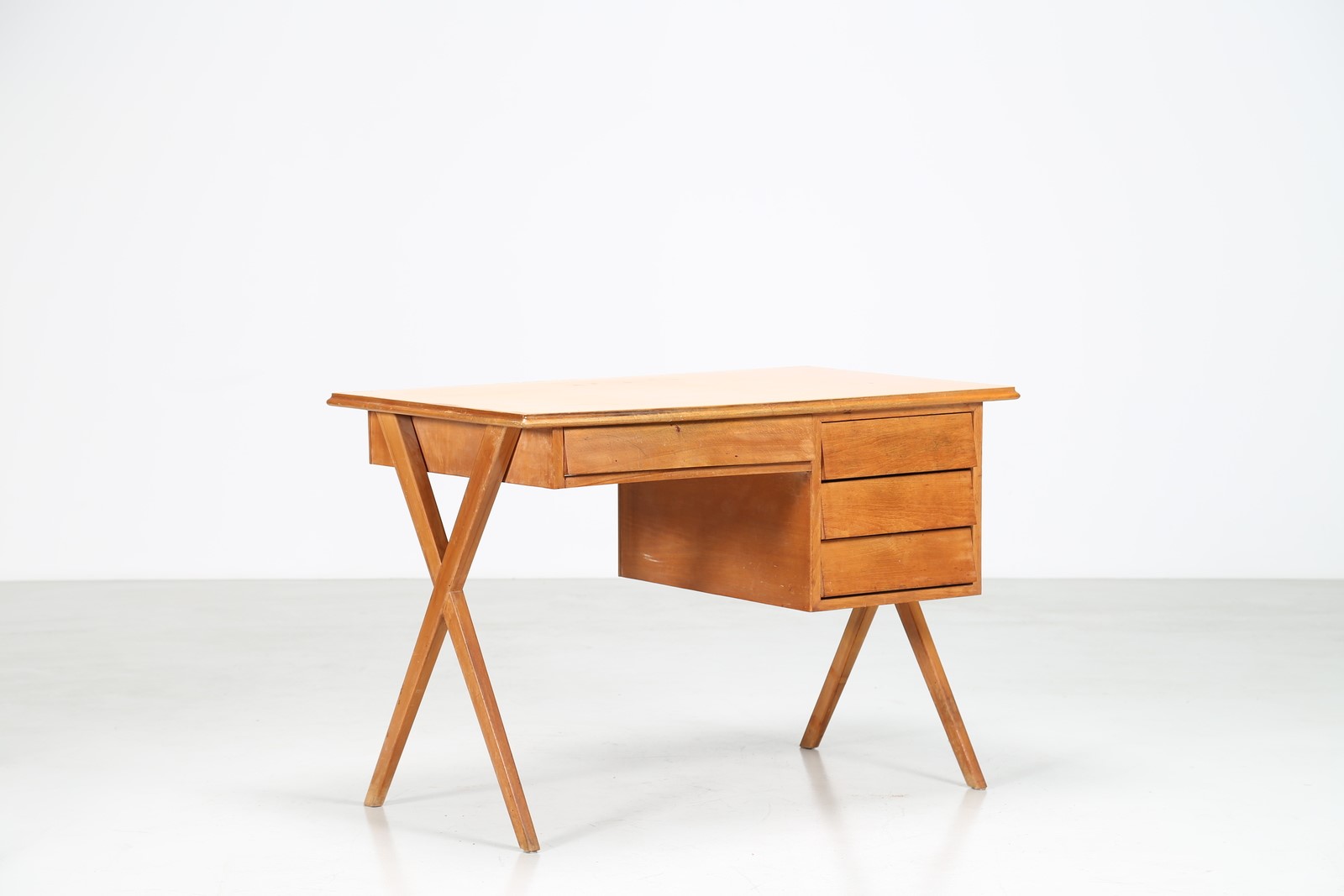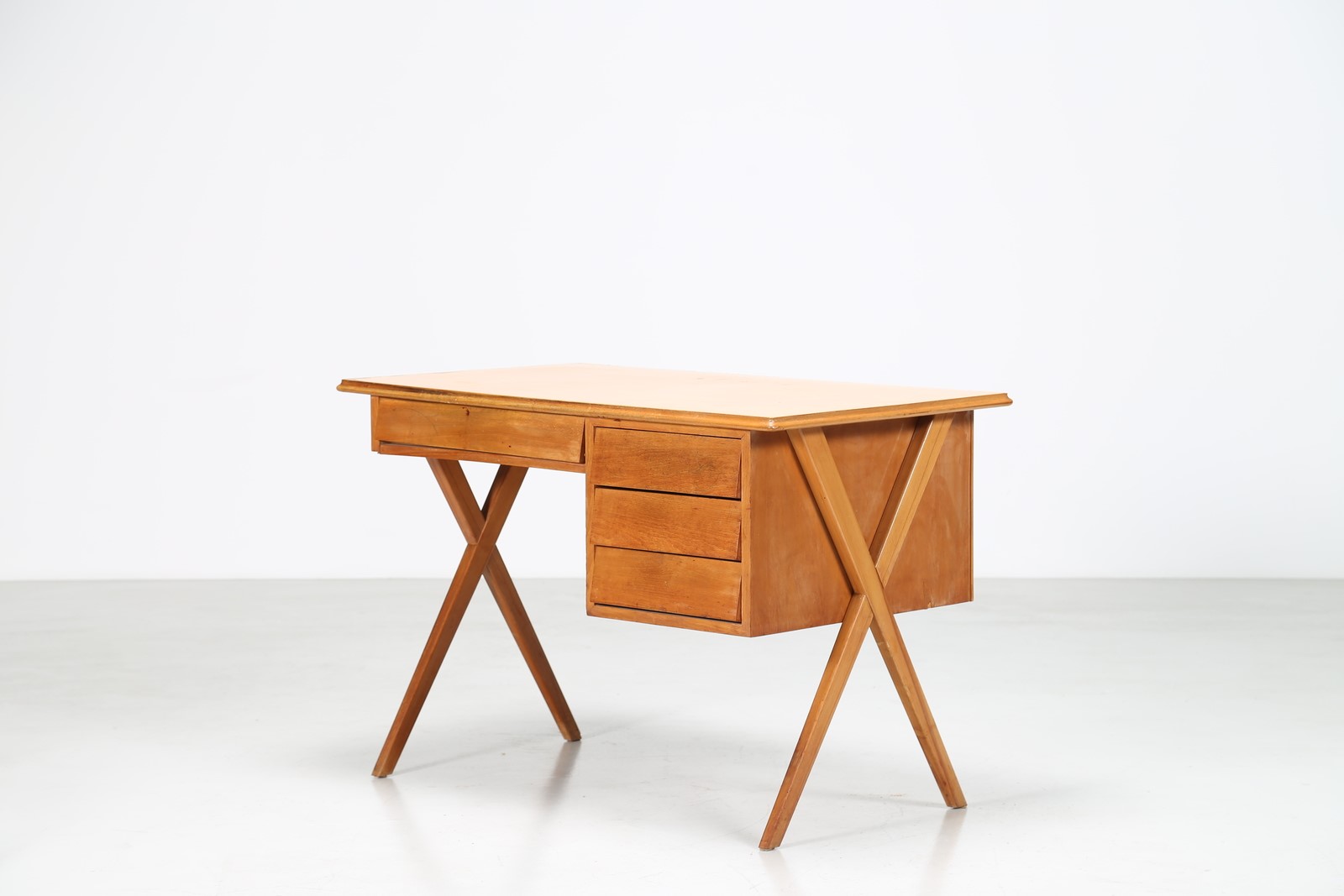 Lotto 423 | MANIFATTURA ITALIANA Scrivania in faggio, anni 50. -. Cm 112,50 x 77,00 x...