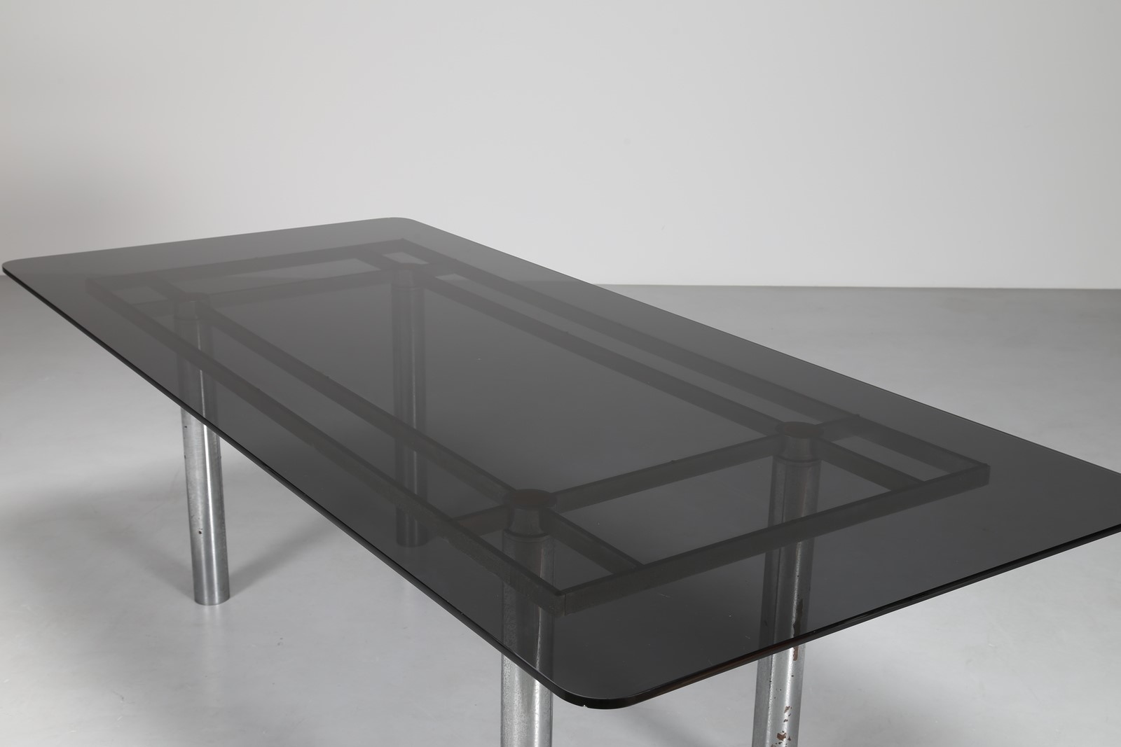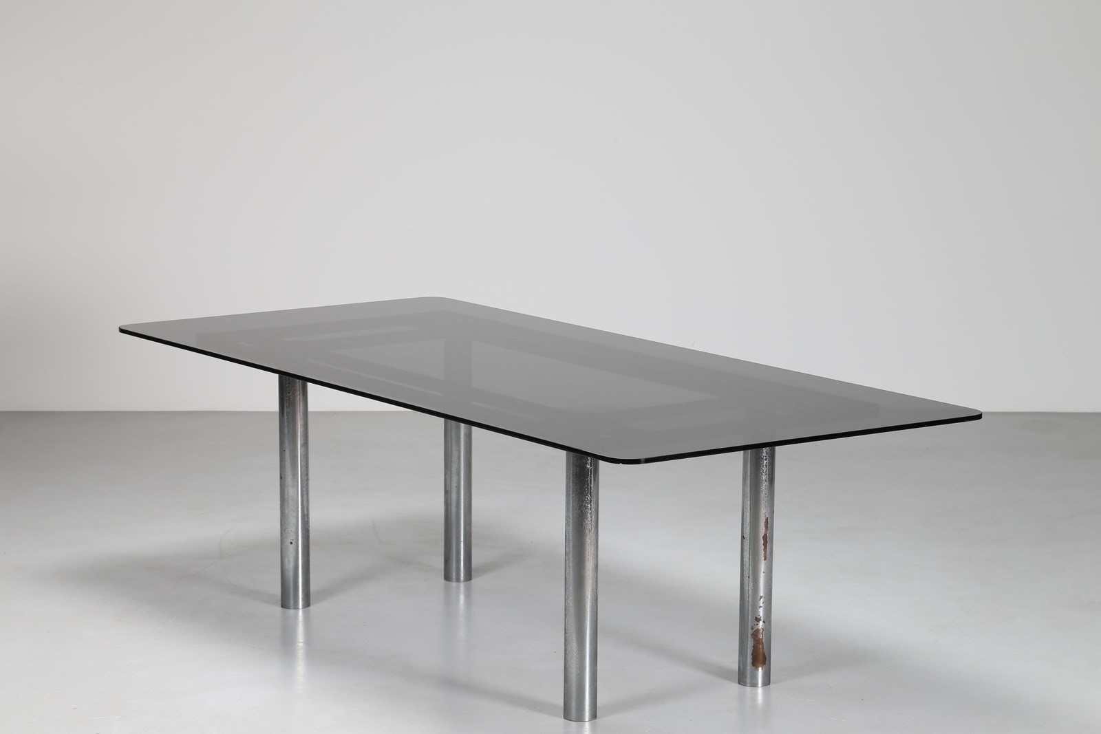 . . Cm 222,00 x 68,00 x 100,00. Piano vetro tavolo leggermente sbeccato su due angoli.