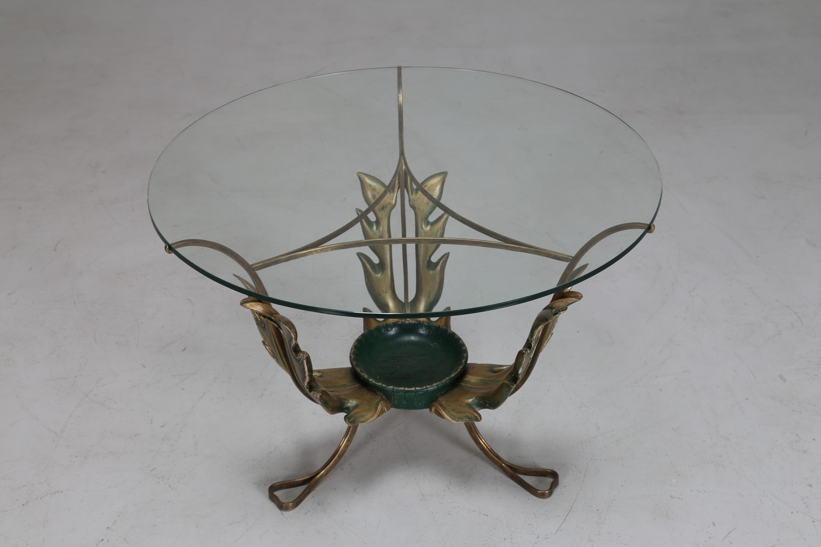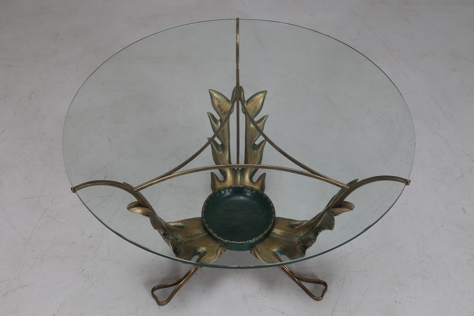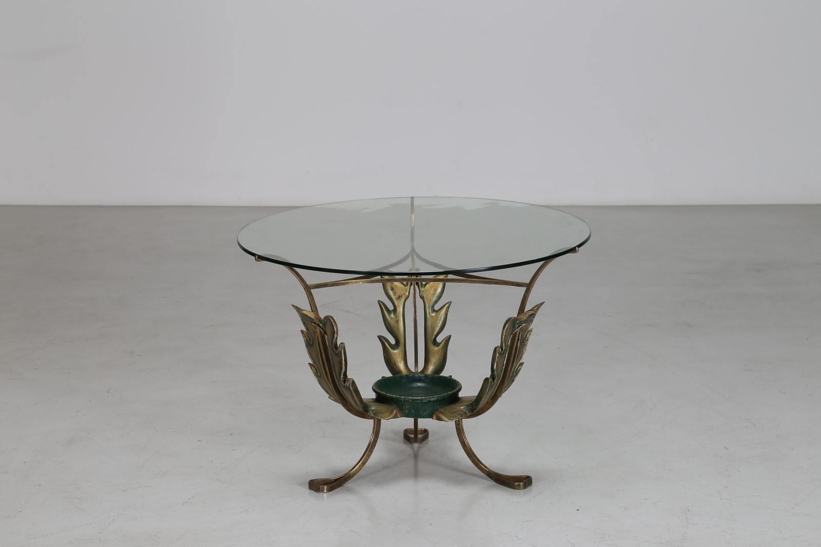 COLLI PIER LUIGI (1895 - 1968) Tavolino legno scolpito, ottone e cristallo, anni 50. -. Cm 76,00 x 54,00 x 76,00.