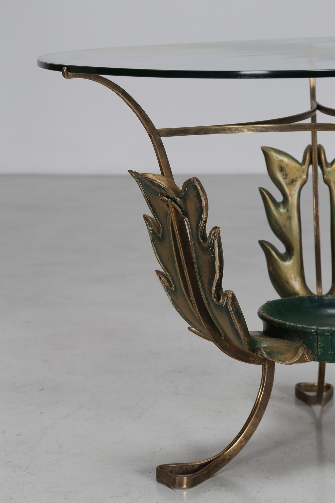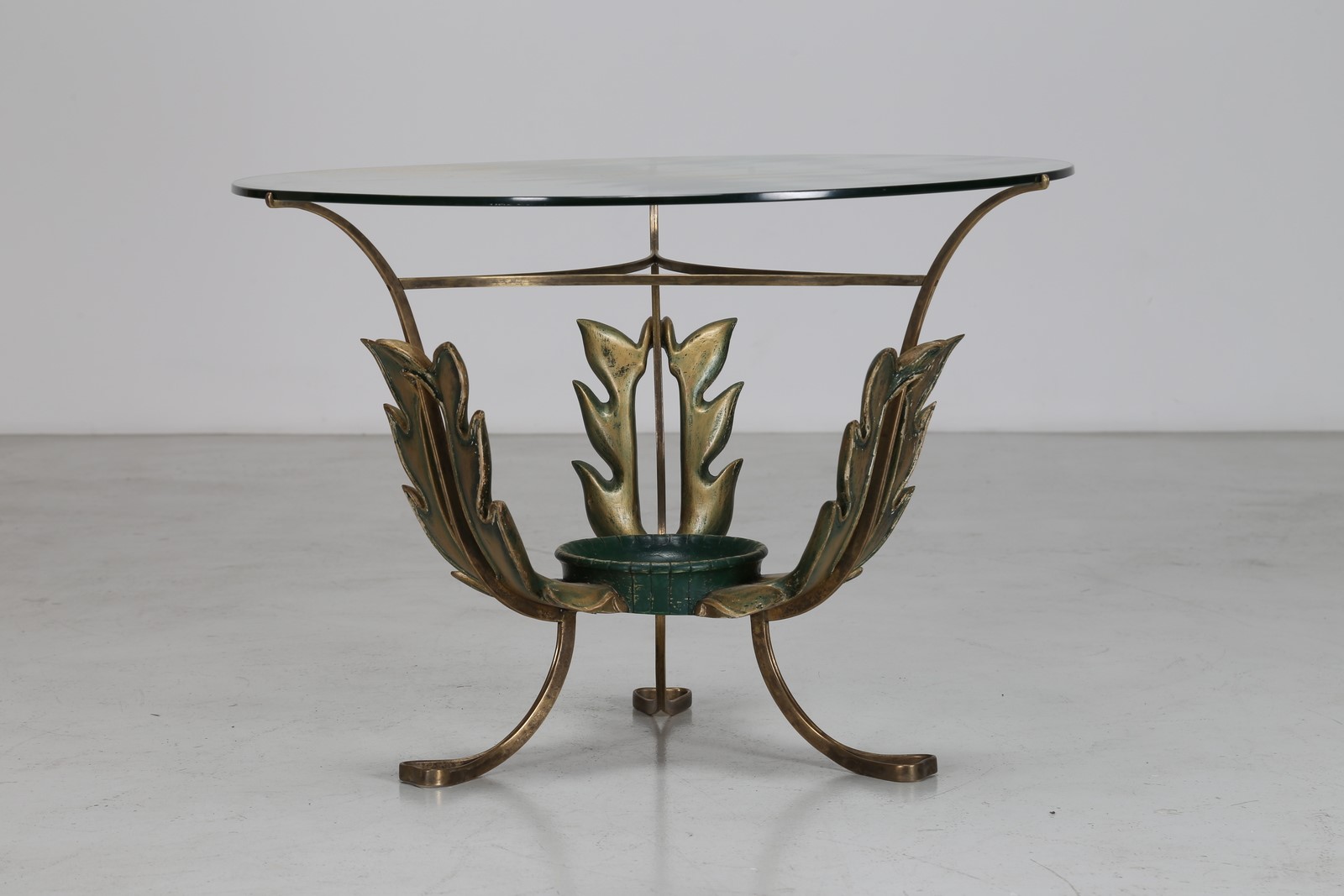 COLLI PIER LUIGI (1895 - 1968) Tavolino legno scolpito, ottone e cristallo,...