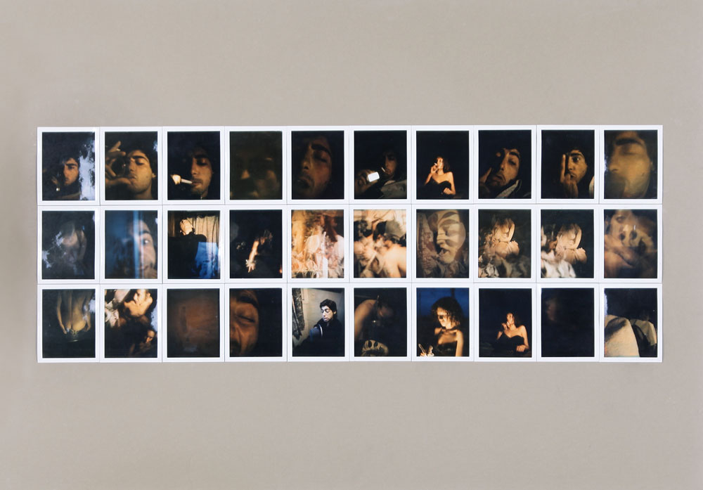MARCO DEL RE Roma 1950 Comte D. et ses petites amour euses, (1975) sequenza di 30 polaroid cm.10,7x8,5 applicate su cartoncino cm. 32x85, firma su una polaroid in basso a destra, etichetta della Galleria Schwarz (MI) al retro.