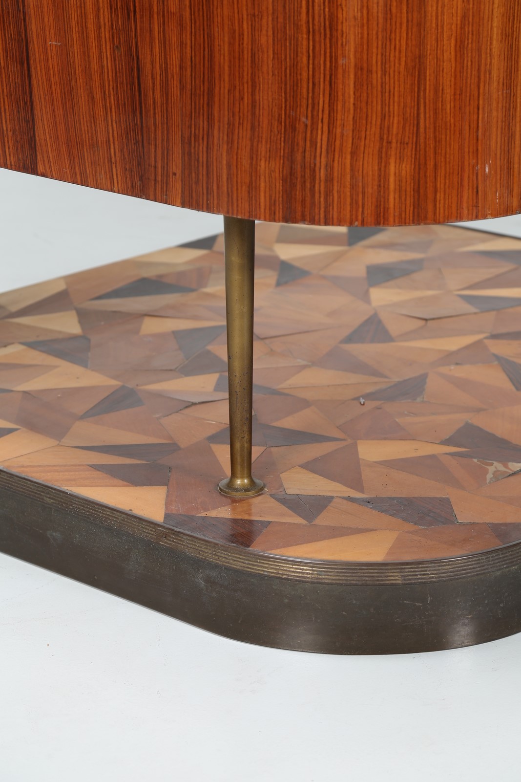 MANIFATTURA ITALIANA Mobile bar in palissandro e ottone, con piani in vetro e...