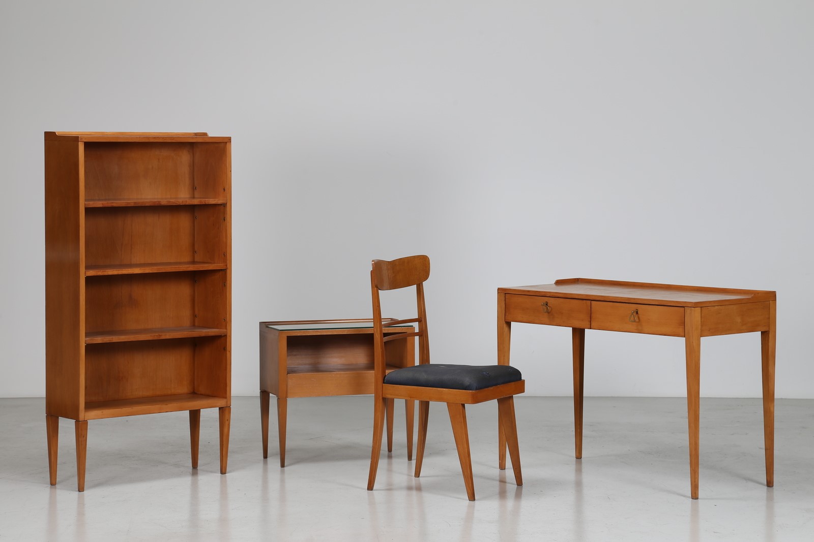 C. M. VAROS Libreria, scrivania, sedia e comodino in faggio, produzione Casa Moderna, Milano 1955