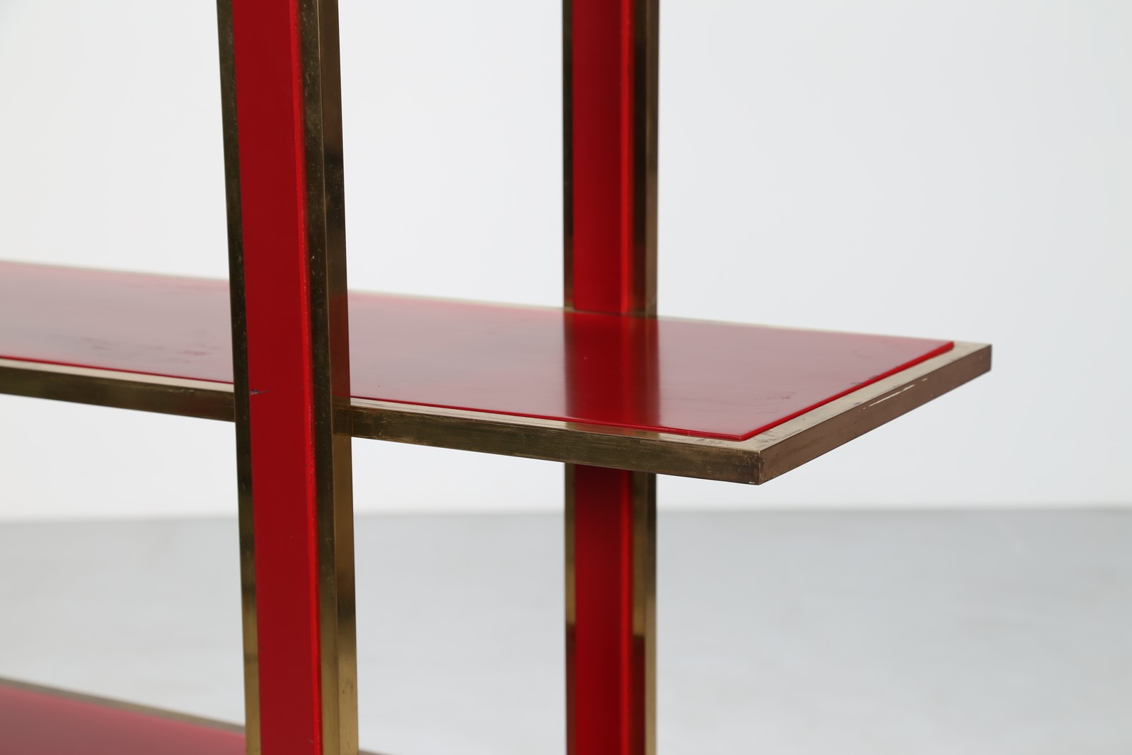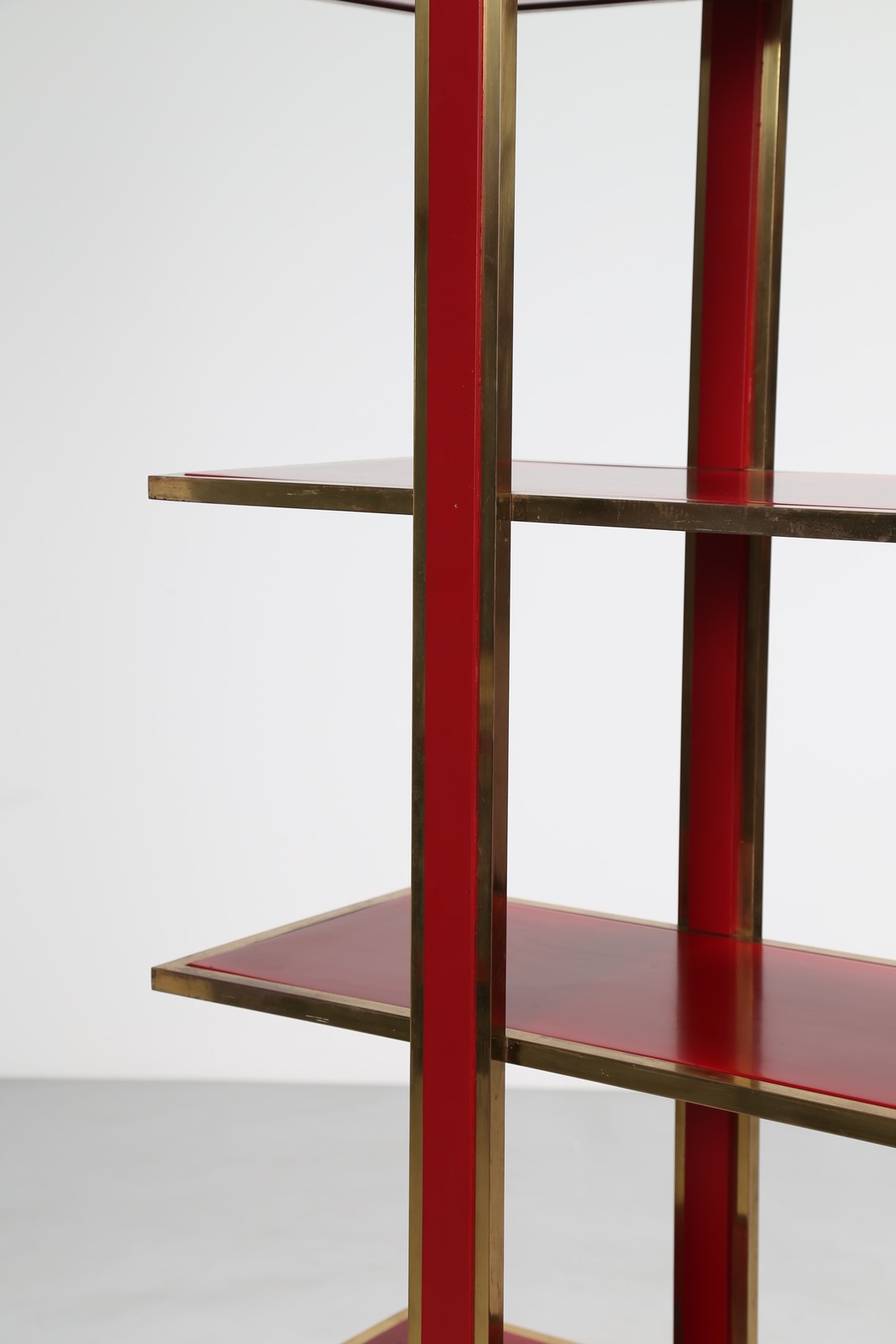 REGA ROMEO Libreria in legno laccato e ottone, anni 70 . -. Cm 144,00 x 198,00 x 39,50.