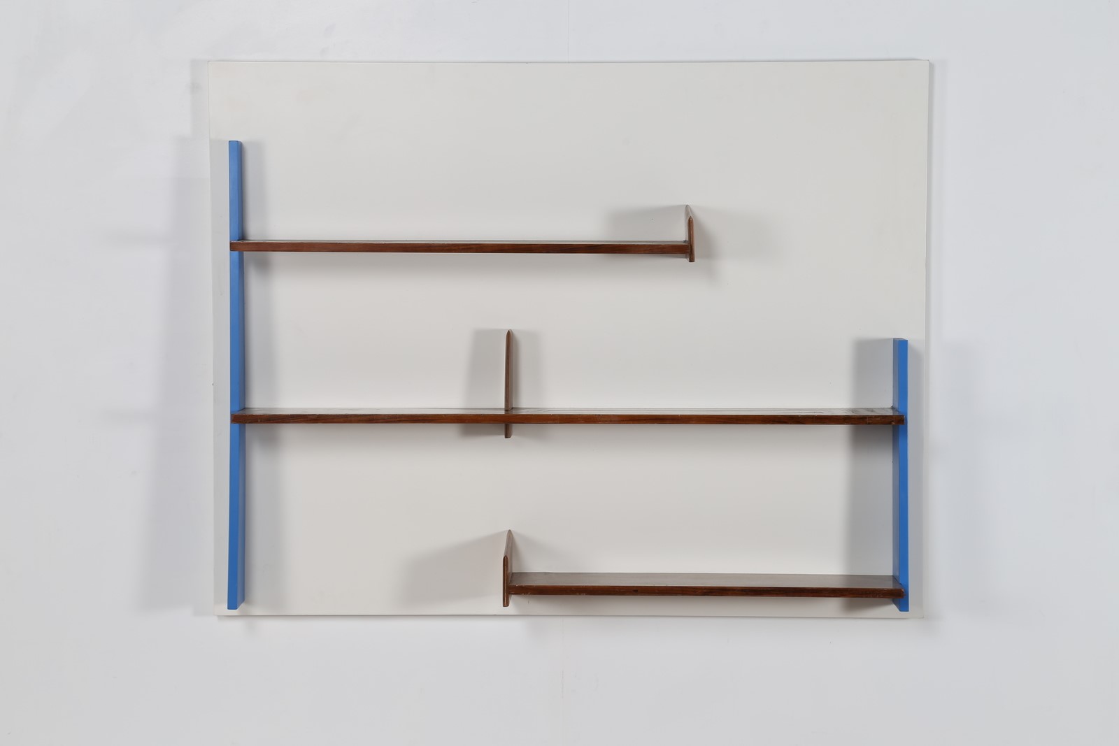 Lotto 549 | MANIFATTURA ITALIANA Libreria in noce e legno laccato, anni 50. -. Cm 134,50...